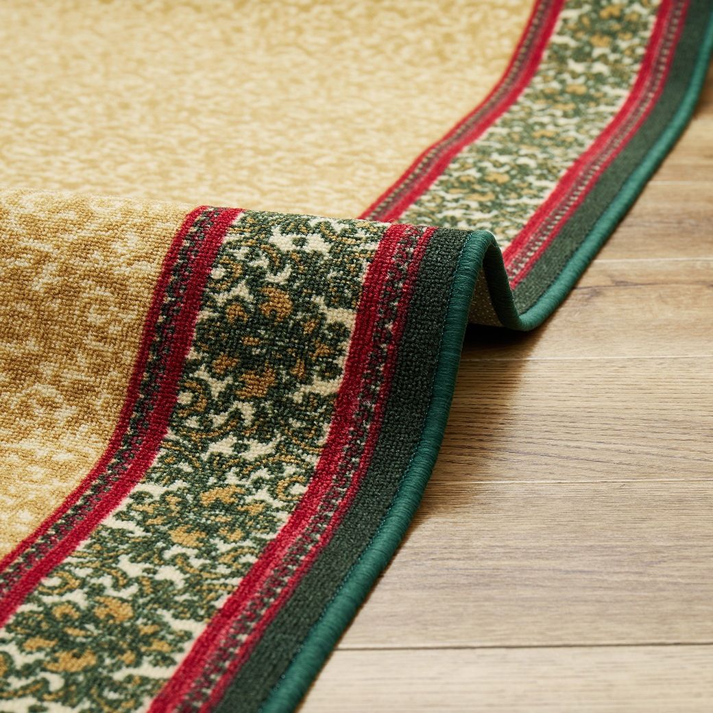 「廊下の傷や汚れを隠したい」「殺風景な廊下を華やかにしたい」「滑りにくく、一年中使えるマットが欲しい」そんな願いを叶える、エレガントなオリエンタル柄の廊下敷きです。短めの毛足(約3.5mm)でさらっとした肌触り。薄手でありながら丈夫で長持ちする素材感で、季節を問わずオールシーズン快適にご使用いただけます。