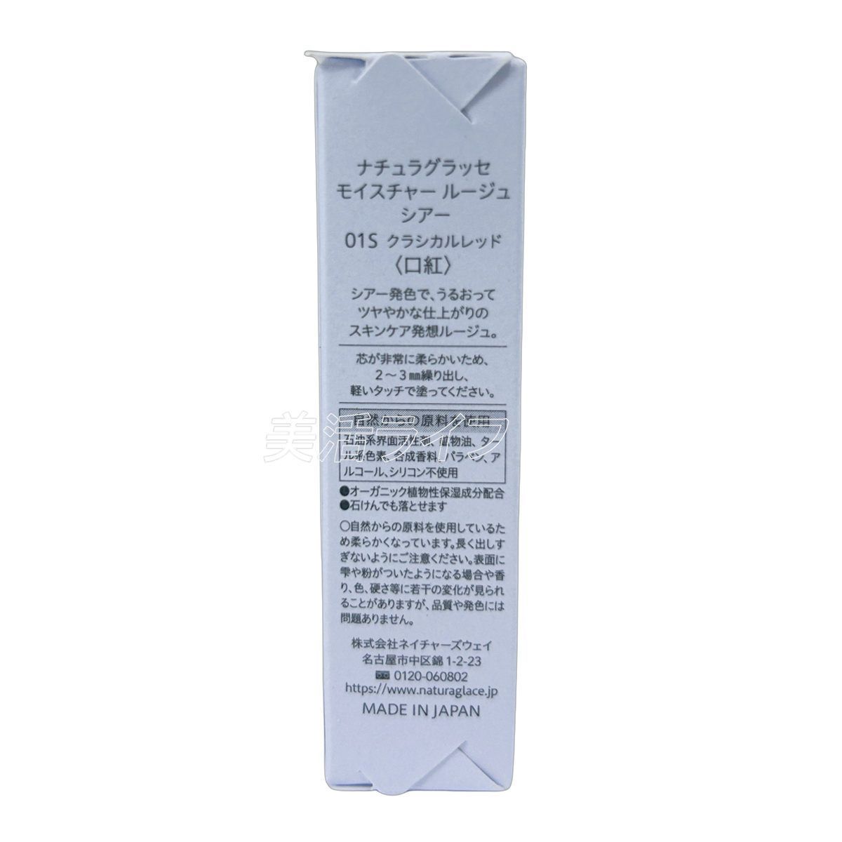 3個セット ナチュラグラッセ モイスチュア&シアー ルージュ 01S クラシカルレッド 3.5g naturaglace Moisture - Sheer Rouge 天然由来 オーガニック うるおいツヤ 透け感レッド 血色感 縦じわカバー 石けんオフ