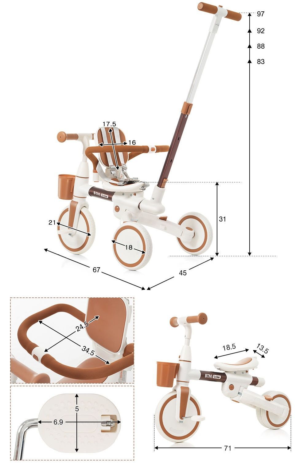 子供用三輪車 折りたたみ かじとり 手押し棒 ストッパー付き 7in1 BTM 座面回転 座席調整 自転車 おもちゃ 乗用玩具 幼児用 キッズバイク サンシェード おもちゃ おしゃれ 1歳 2歳 3歳 クリスマスプレゼント こともの日 女の子 男の子