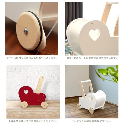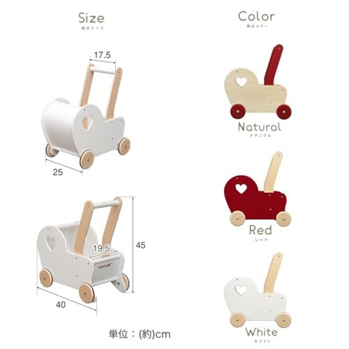 Moover DOLL PLAM HEART ドールプラムハート 乳母車 ホワイト 手押し車 人形遊び お母さんごっこ ベビーカー ワゴントイ 木製 知育玩具 ままごと 北欧デザイン おしゃれ 対象年齢 2歳以上 赤ちゃん