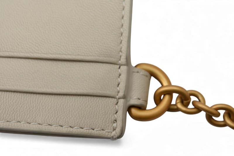 ボッテガヴェネタより、カードケース/名刺入れです。シンプルでありながら美しく仕上げられたエレガントなデザイン。チェーン付きですので、バッグの中に固定すれば探しやすく嬉しい設計に。シンプルなカードケースは、流行や年齢を問わず、長くお使いいただけます!【 用途 】カードケース、名刺入れ