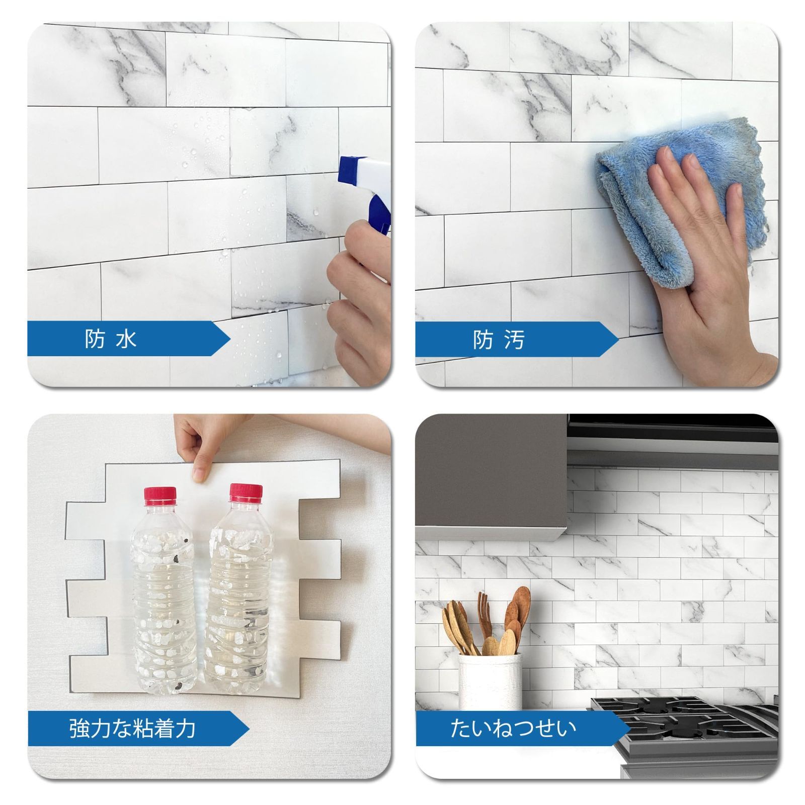 高級感のモザイクタイルシール:まるで本物みたいなモザイクタイルシール,大理石風,つや消し。強粘着の粘着剤を使っているため、ビニル壁紙、化粧合板などの平滑な面にきれいに貼ることができます,タイル、金属板、ガラス面にも貼り付けることができます