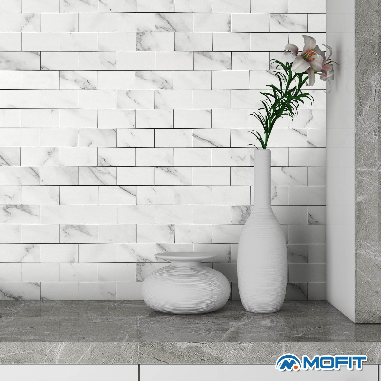 M MOFIT タイルシール キッチン 洗面所タイル 壁 DIY 防水パネル モザイクタイル 大理石風 ウォールデコッシュ(5 枚 白い)