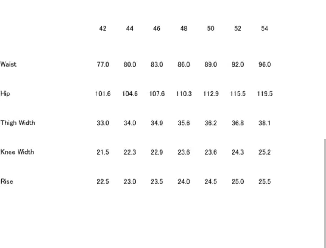 実寸 : 総丈 99.5, ウエスト 43, 股下 73, 裾 19.5 カブラ 5