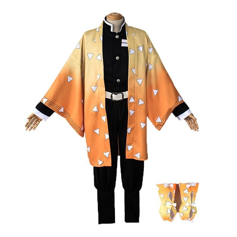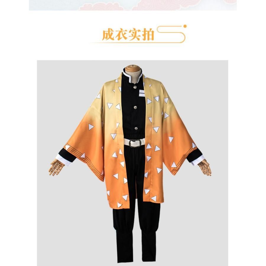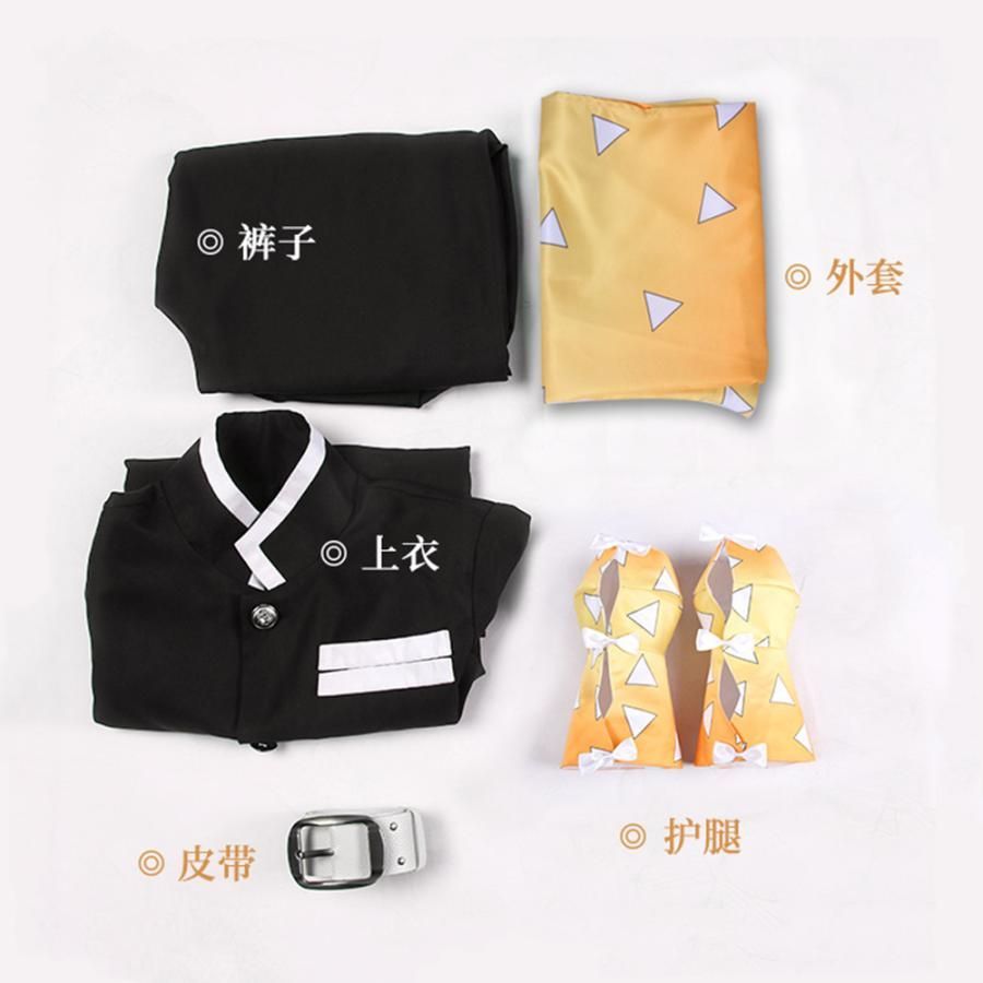 ♥ 鬼滅の刃 COS 我妻善逸 コスプレ 服装 子供用 大人用 サイズ アニメ すね当て 未開刃 刀 文化祭 meilu51209
