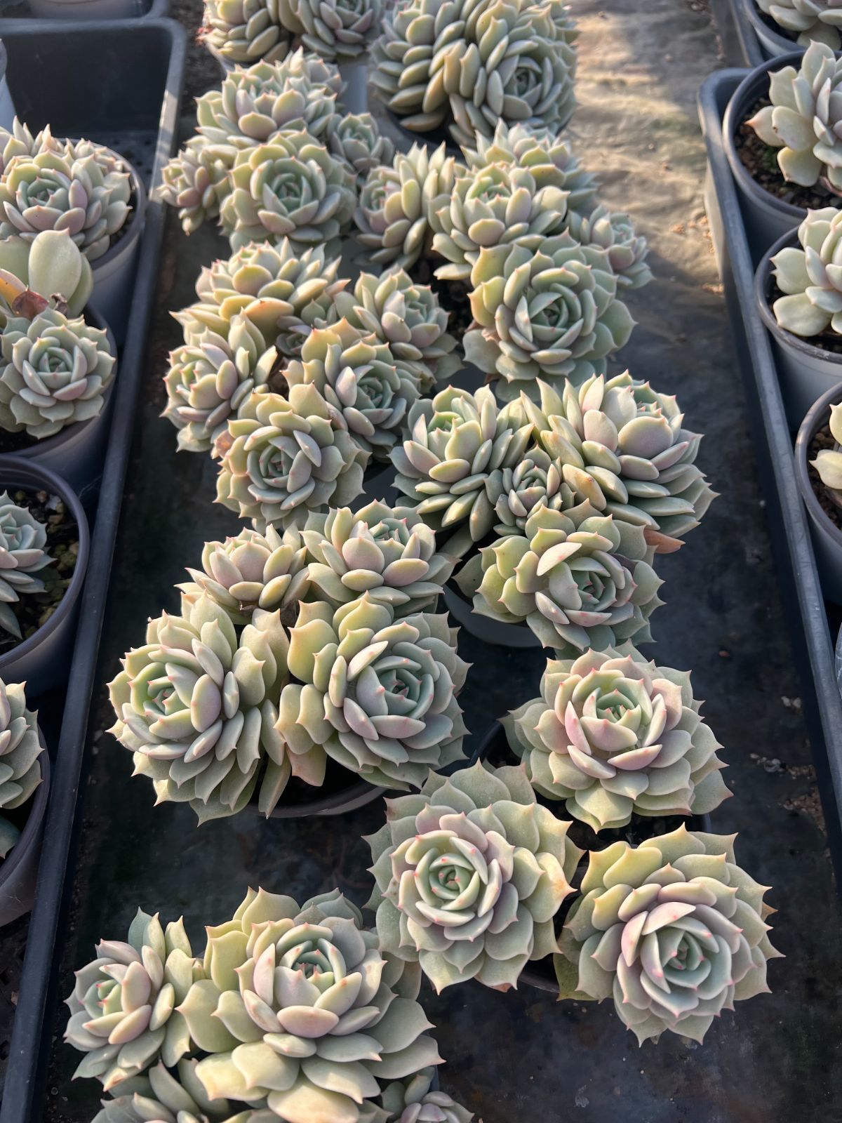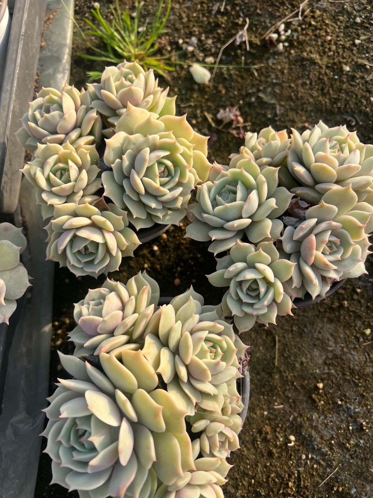 柔らかな光を浴びて輝く、エケベリア特有のロゼットが美しい多肉植物です。