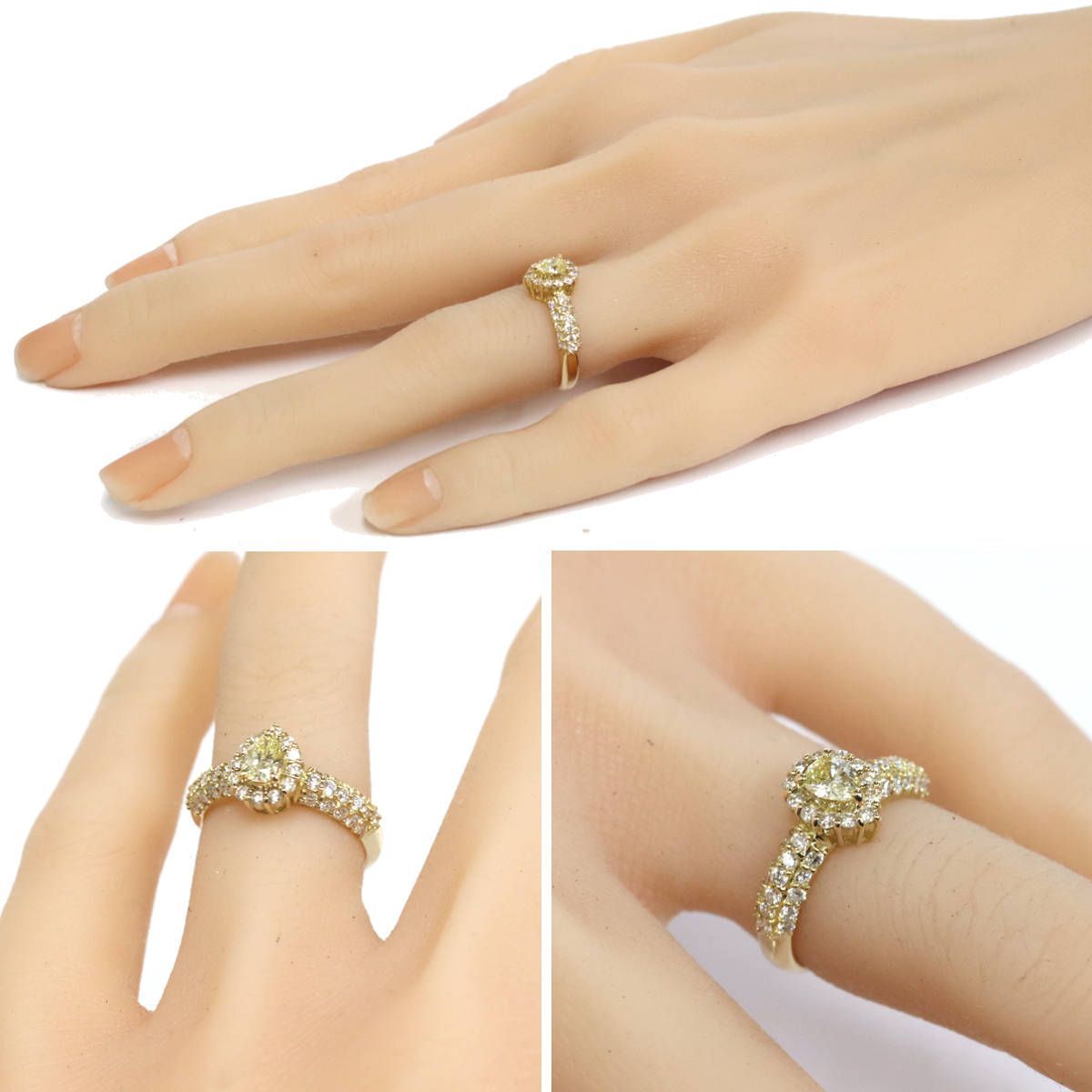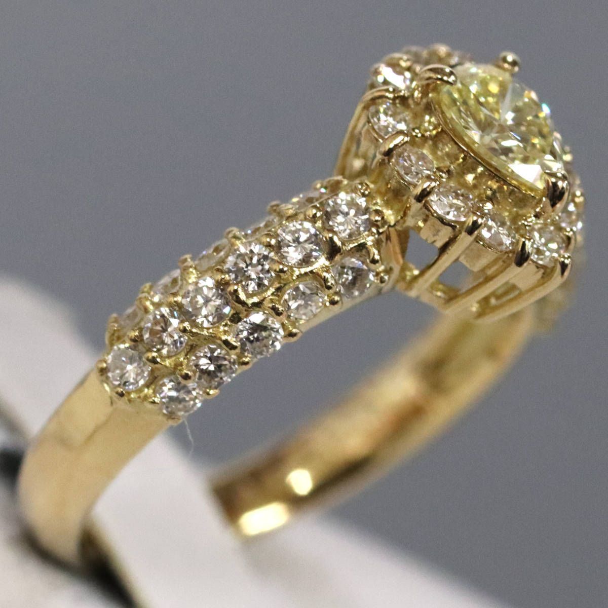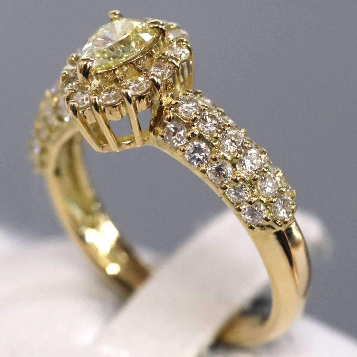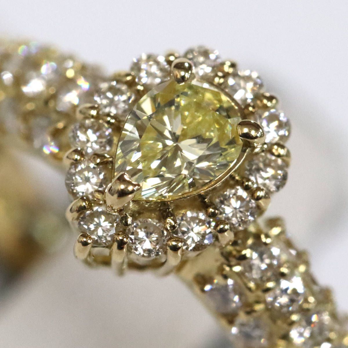 中石のダイヤモンドはペアシェイプで、やや黄色がかった色味です。