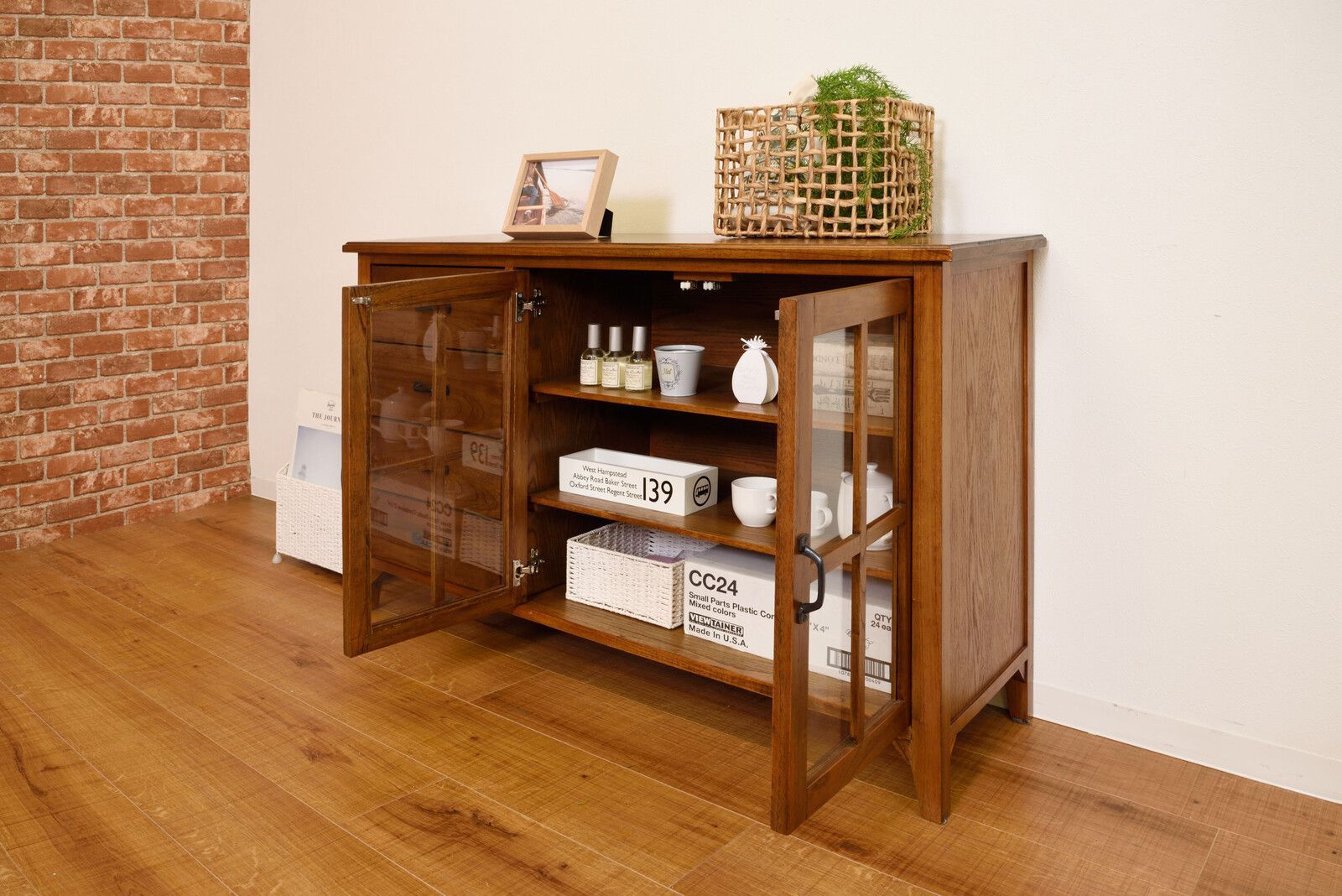 ●天然木の豊かな風合いと統一感のあるアイアンのキャビネット