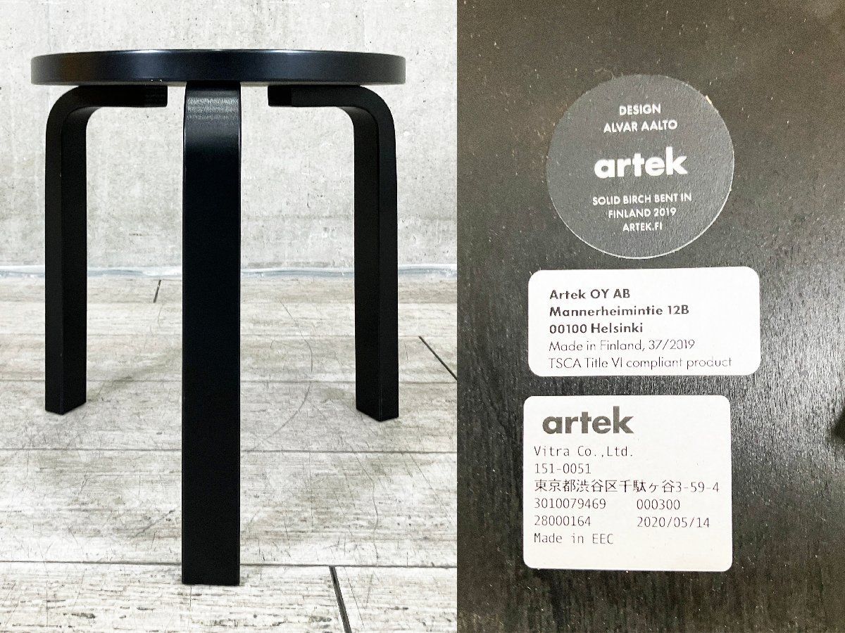 artek アルテック スツール60 アルヴァ アールト 北欧 フィンランド 3本足 ブラックラッカー