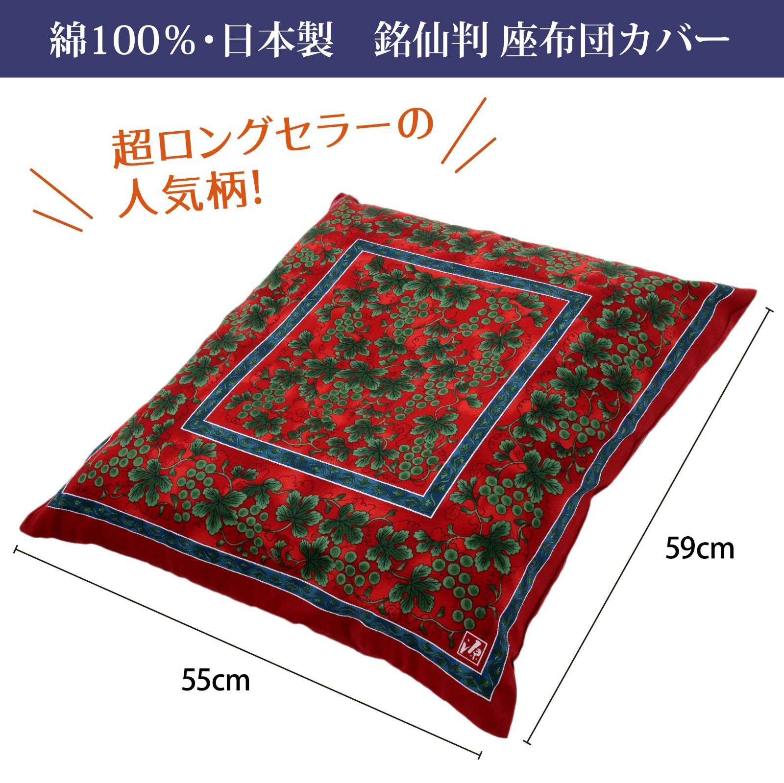 新着商品 洗える 緑彩葡萄絵柄 銘仙判 55X59cm 座布団カバー 西川 レッド PG02083096 nishikawa