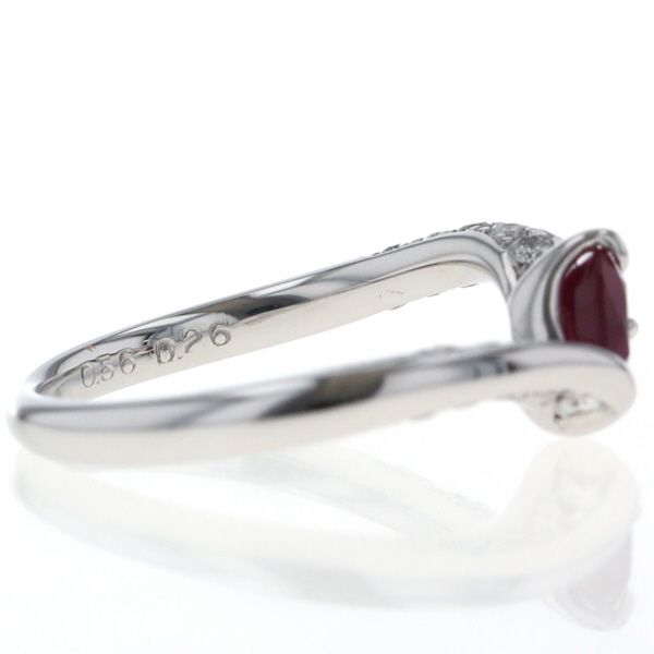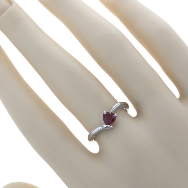 K18WG ホワイトゴールド リング ルビー 0.56ct ダイヤモンド 0.26ct ハート ウェーブ 指輪 11号 仕上済 zz