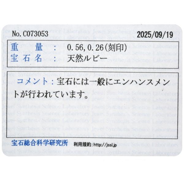 約3.3g【素材】K18WG【石目】ルビー0.56ctダイヤモンド0.26ct【サイズ】約 11号幅 最大 6.9mm 最小 2.1mm