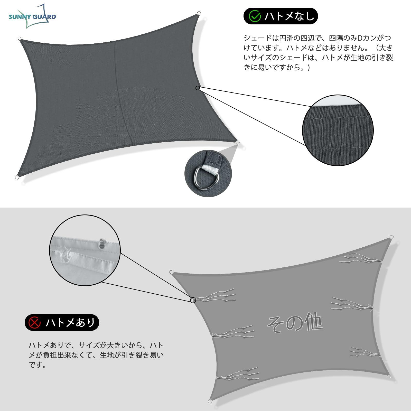 SUNNY GUARDひ雨よけ シェード 4x6m アイボリー 撥水シェード 四角サンシェード