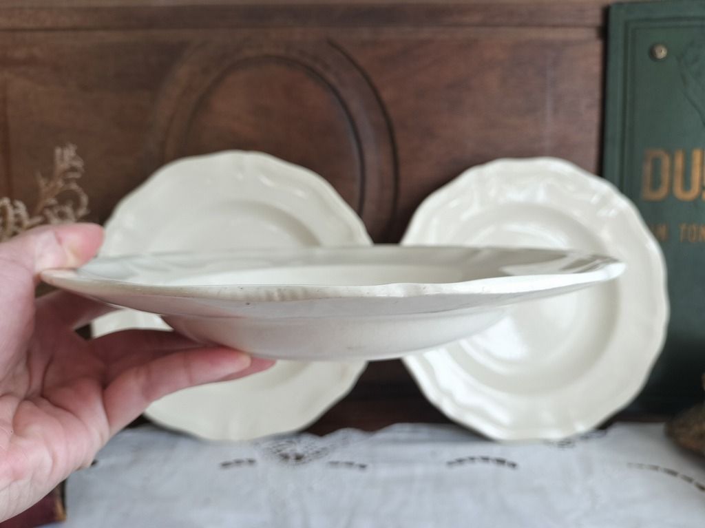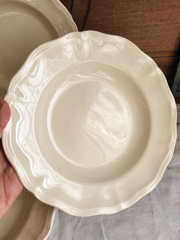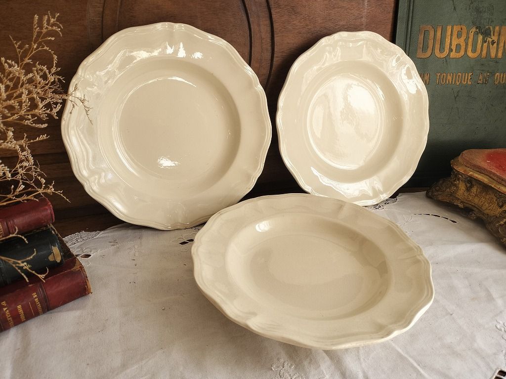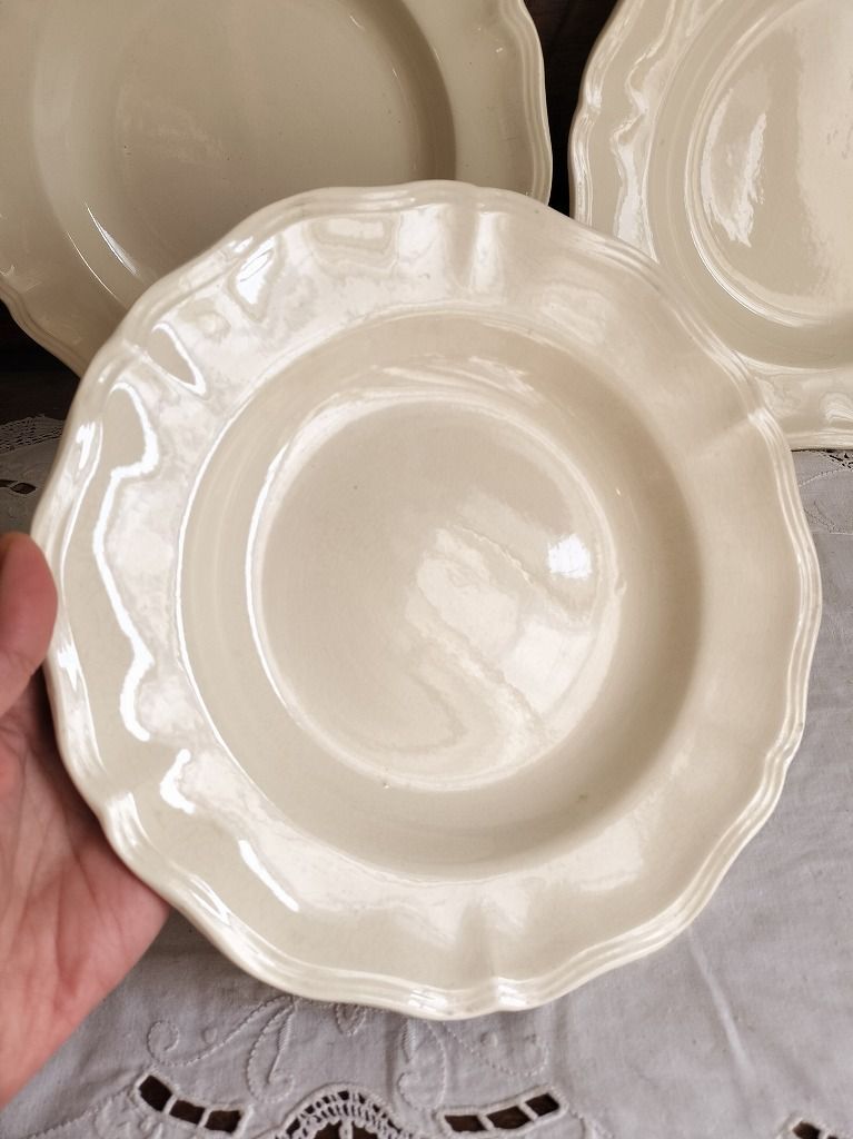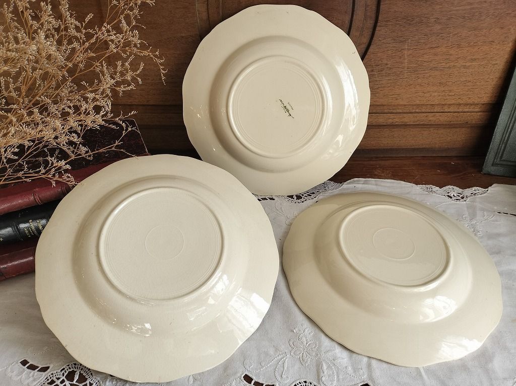 フランス アンティーク 花リム 深皿 3枚セット サルグミンヌ 美品 です。
