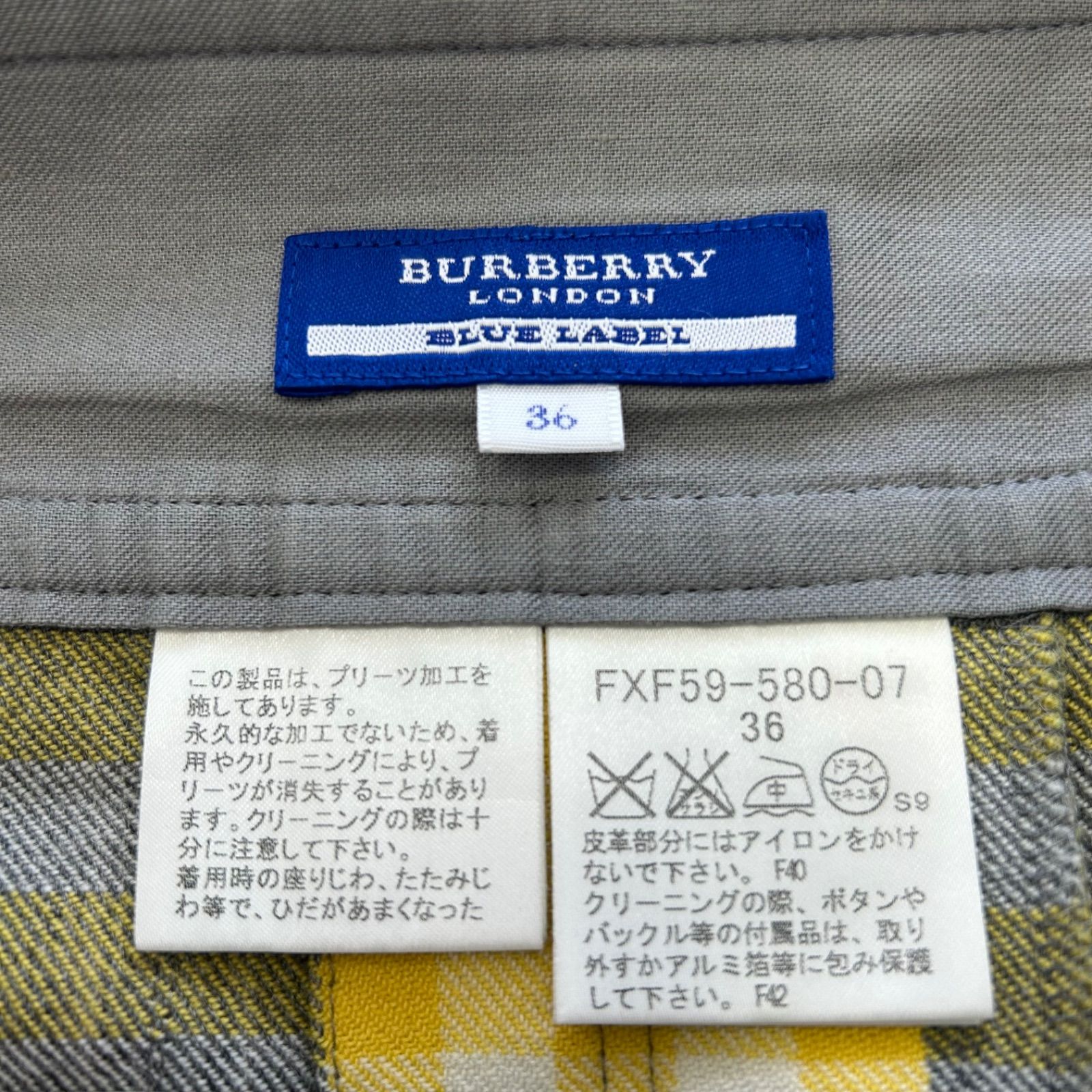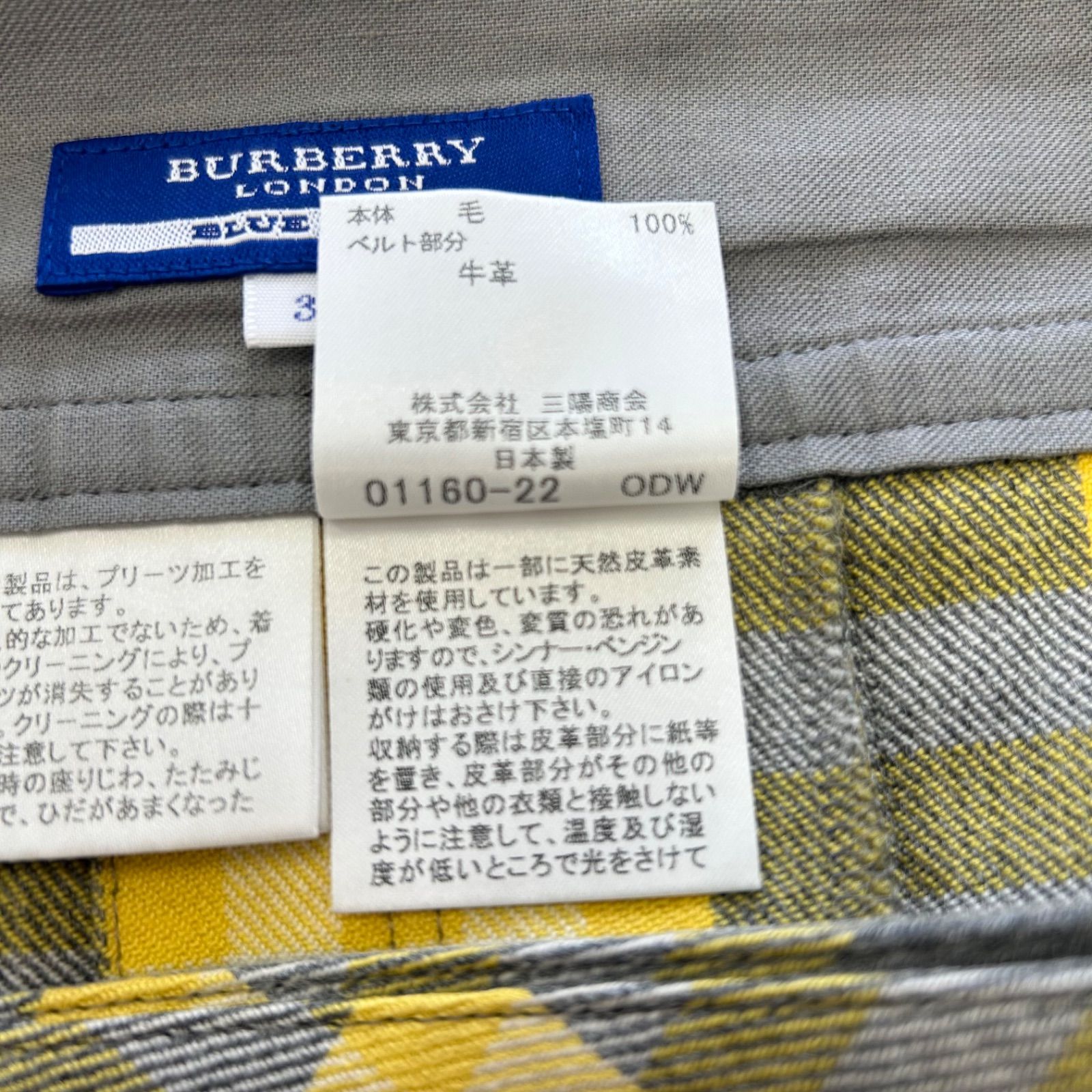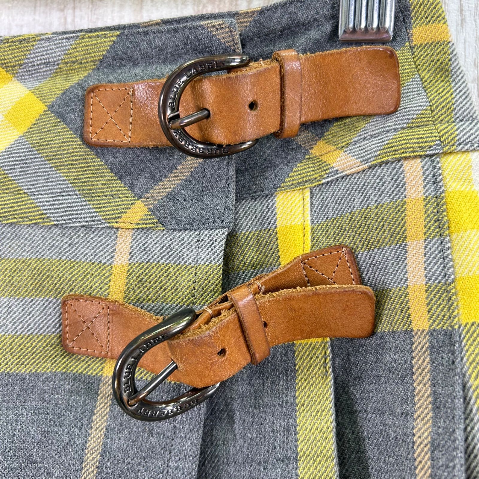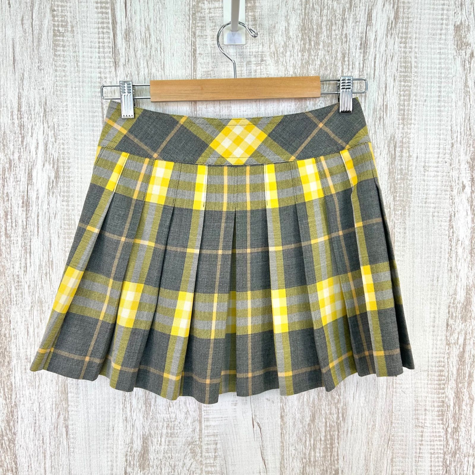 BURBERRY BLUE LABEL バーバリーブルーレーベル チェック 総柄 ベルト付き ウール プリーツ ミニスカート イエロー