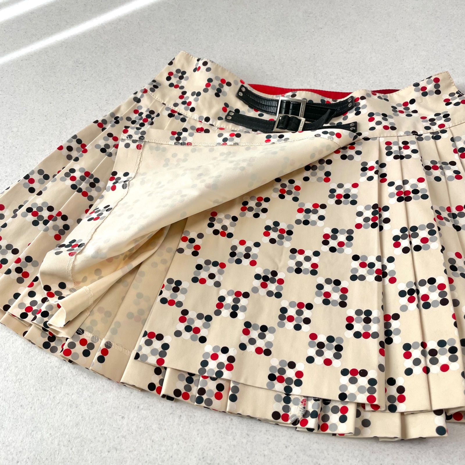 BURBERRY BLUE LABEL バーバリーブルーレーベル Y2K 平成ギャル ドット柄 牛革ベルトプリーツ ミニスカート
