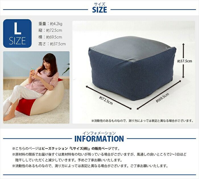 約幅69.5×奥行72.5×高さ37.5cm(Lサイズ)