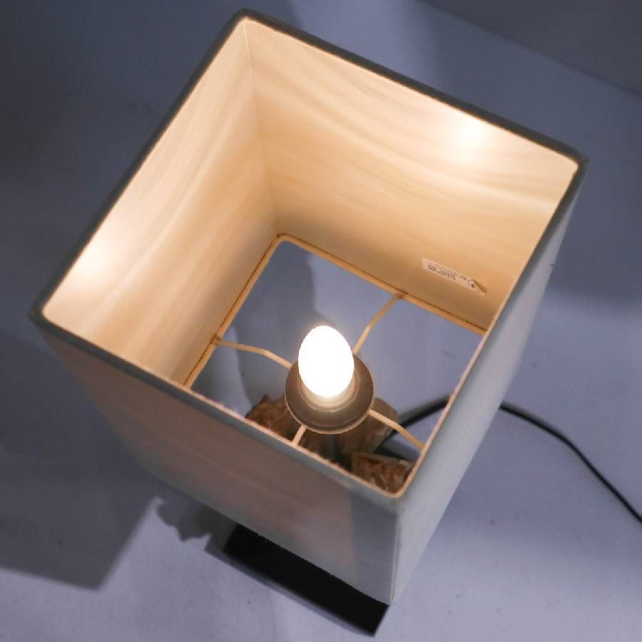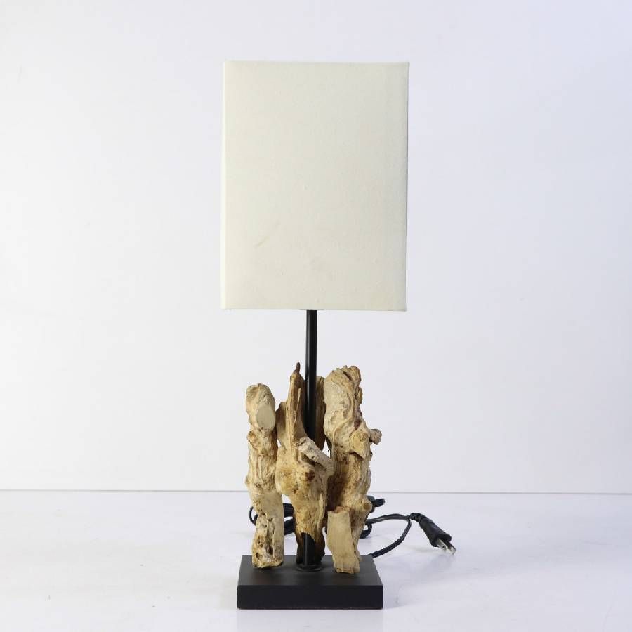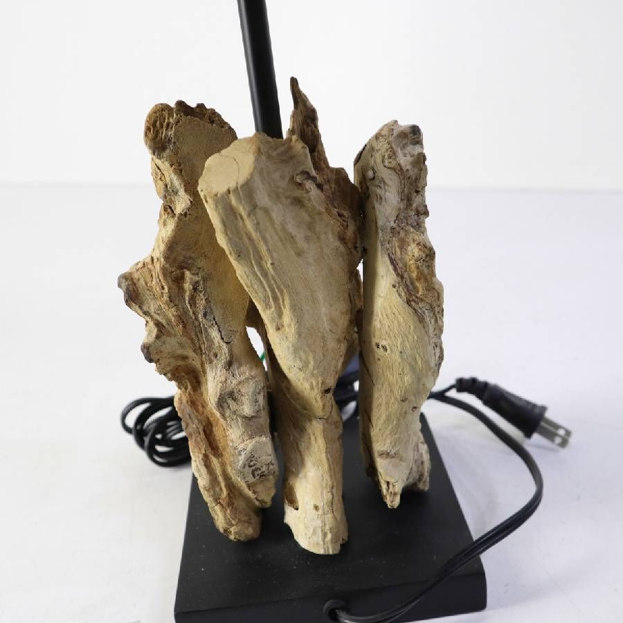 流木ならではの自然な造形と、シンプルなスクエア型シェードの組み合わせが魅力。