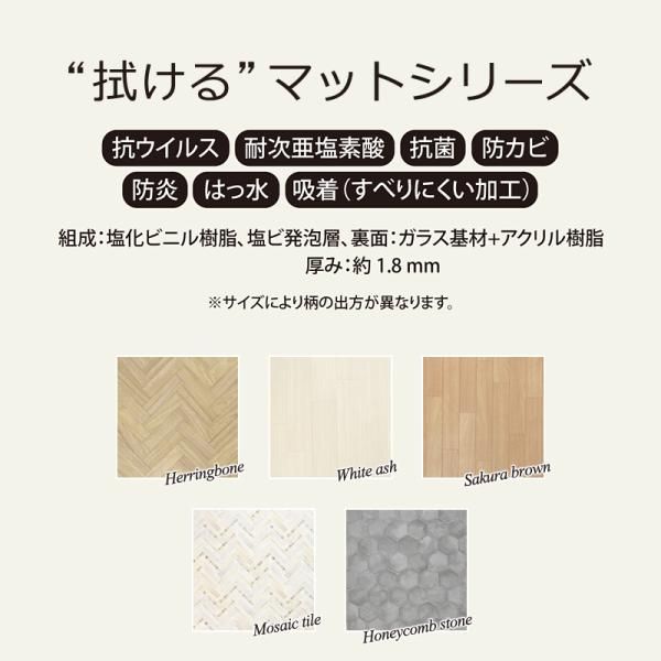 キッチンマット 拭ける 270 おしゃれ 45×270cm 北欧 木目柄 白 ホワイト モザイクタイル 石目 クッションフロア シート ふける 抗菌 防カビ 防炎 撥水 ずれ防止