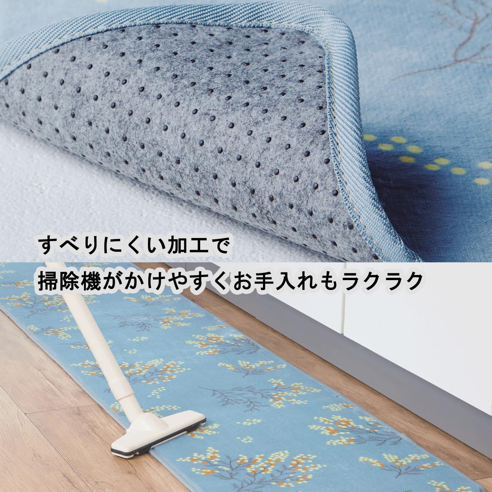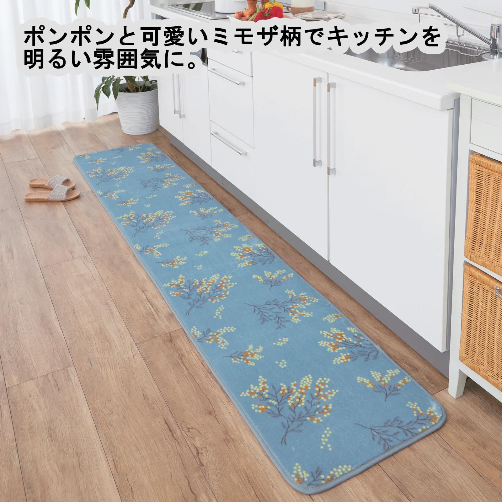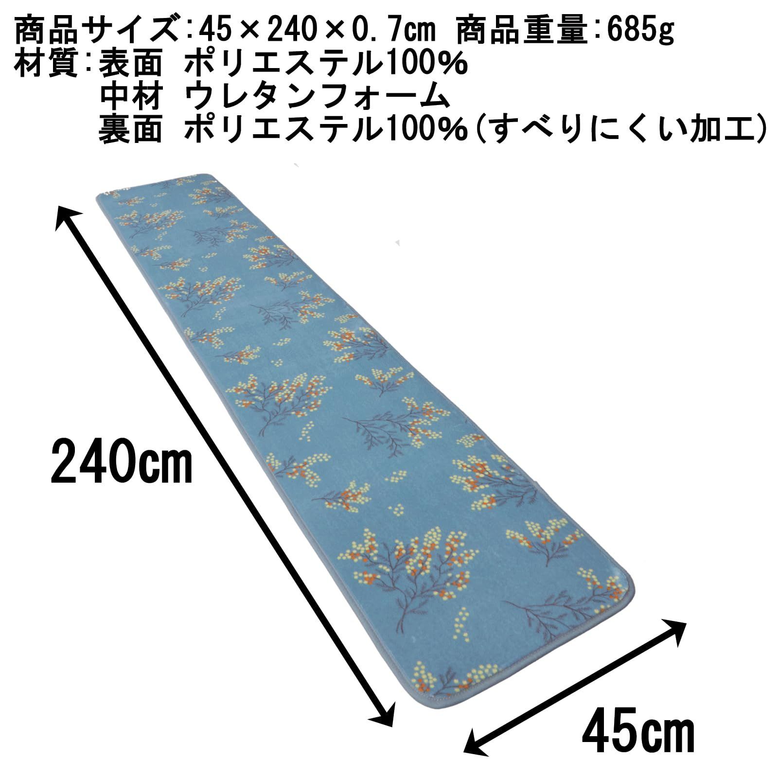 トップ産業(Top-sangyo) キッチンマット さらふわ ロングマット ミモザ ブルー 45×240㎝ 台所 フローリング 長い すべり止め 新生活 北欧 ふわふわ さらさら おしゃれ かわいい 92141900