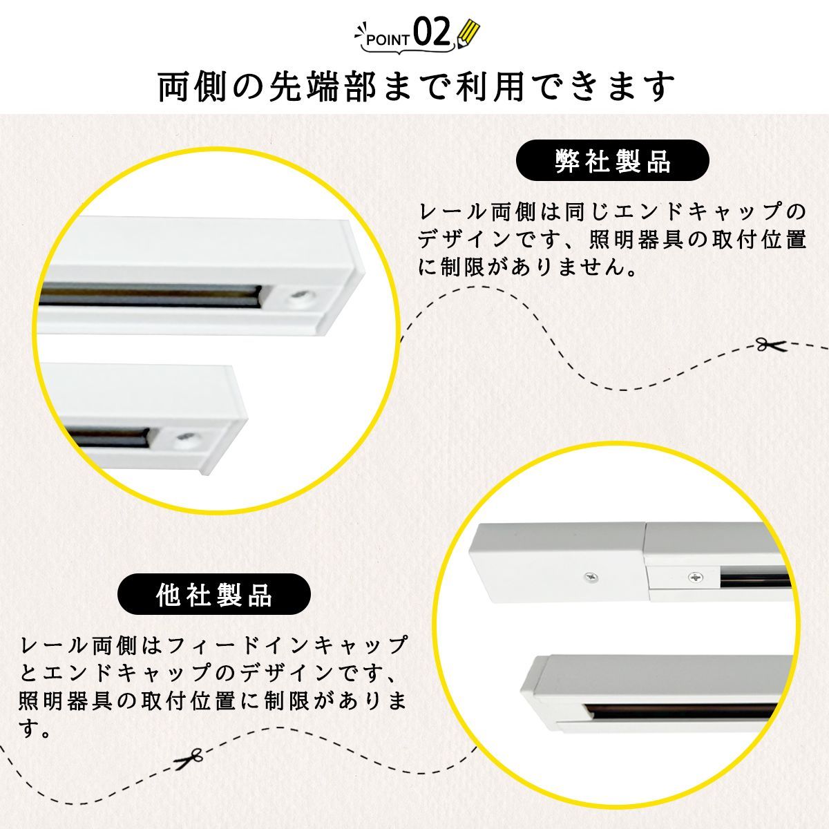 ● レール両側は同じエンドキャップのデザインなので、先端部まで利用できます。