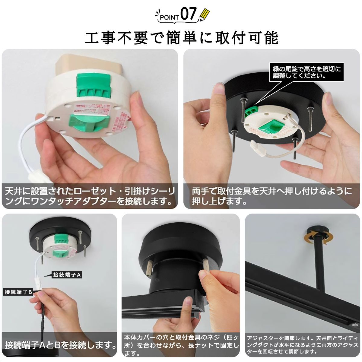 ● 両側固定用のアジャスター付きなので、ダクトレールの傾きを防ぎ、安定性も高いです。