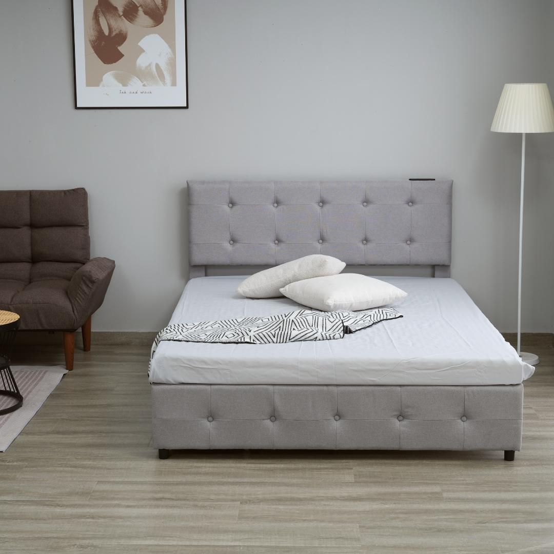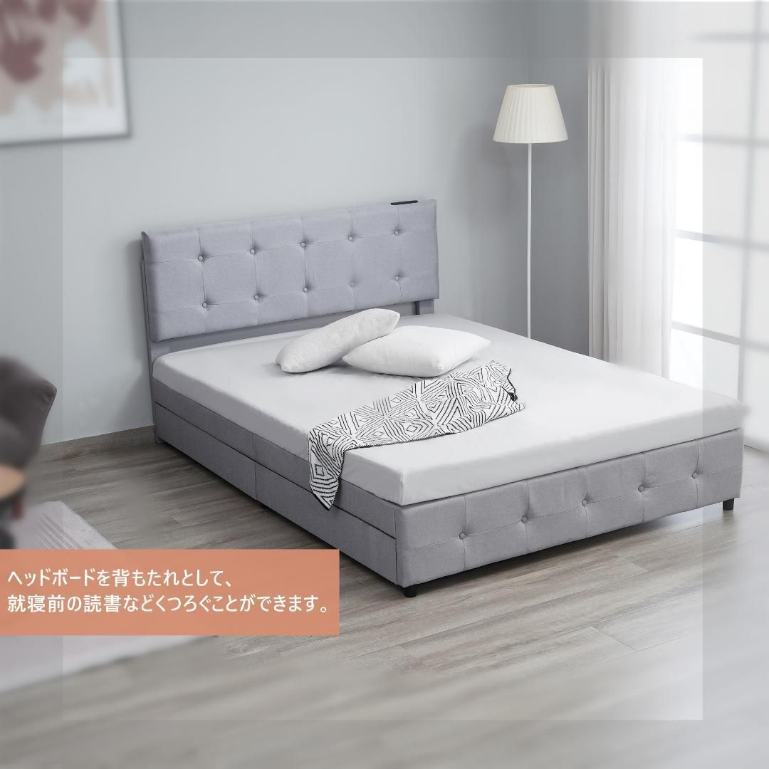 ファブリックベッド ベッドフレームのみ ダブル 引き出し付き 布貼りベッド 木製 アイアン 大人用 組立簡単 下収納 すのこベッド 耐震 ベッド 北欧風 おしゃれ マットレスは別売り Dダブル ライトグレー yew1