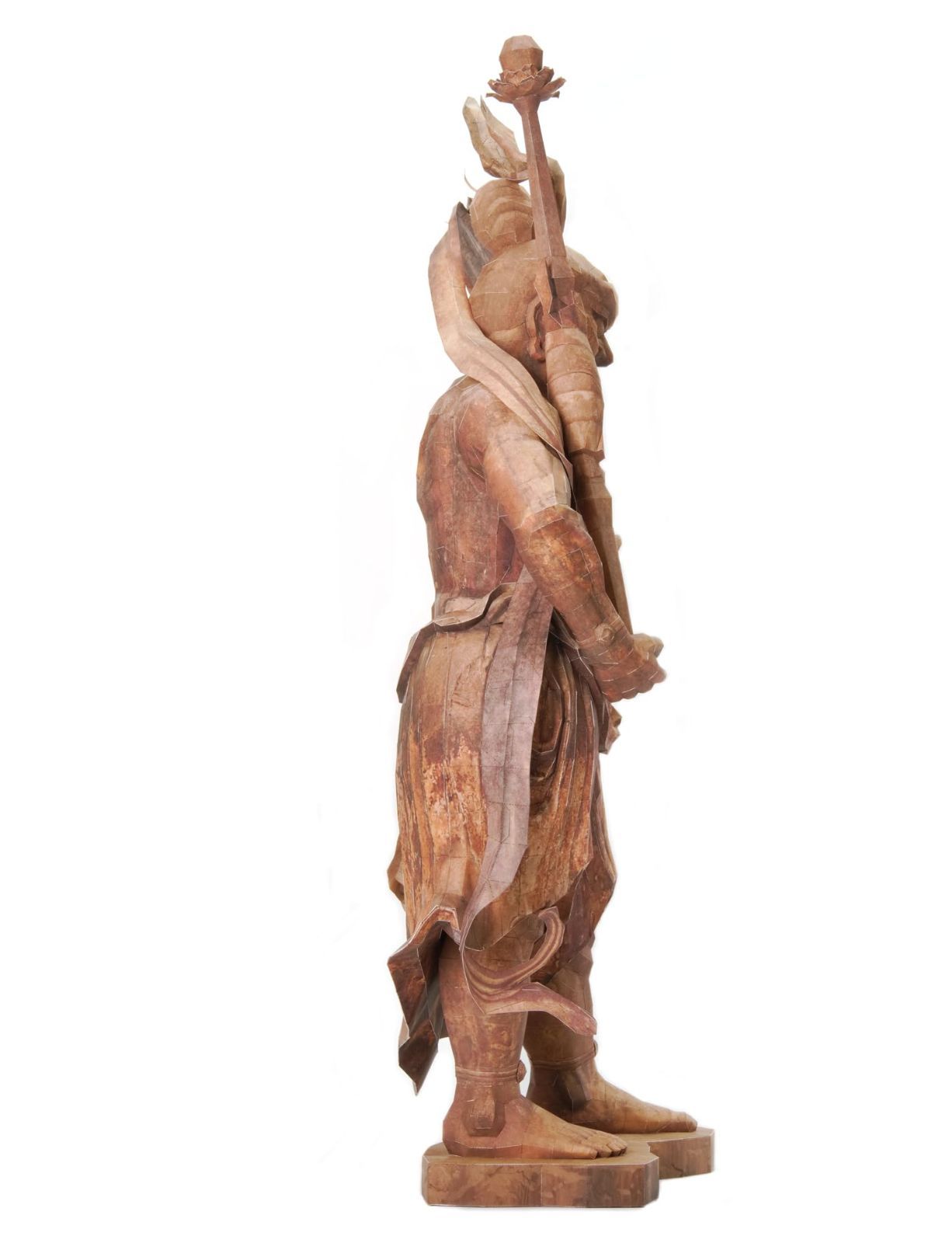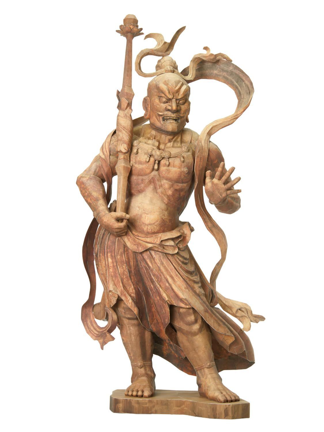 眼を剥きだした憤怒の表情と堂々とした立ち姿の金剛力士像 阿形をペーパークラフトにしました。歴史ある遺産に親しみ、身近において楽しんでいただきたいと いう思いから、この仏像ペーパークラフトは企画されました。 仏像を自身の手で制作し、その造形をより深く知り 秘められた歴史を感じていただけたら幸いです。 簡単ではありませんが完成後には満足感を得られるペーパークラフトになっていると思います