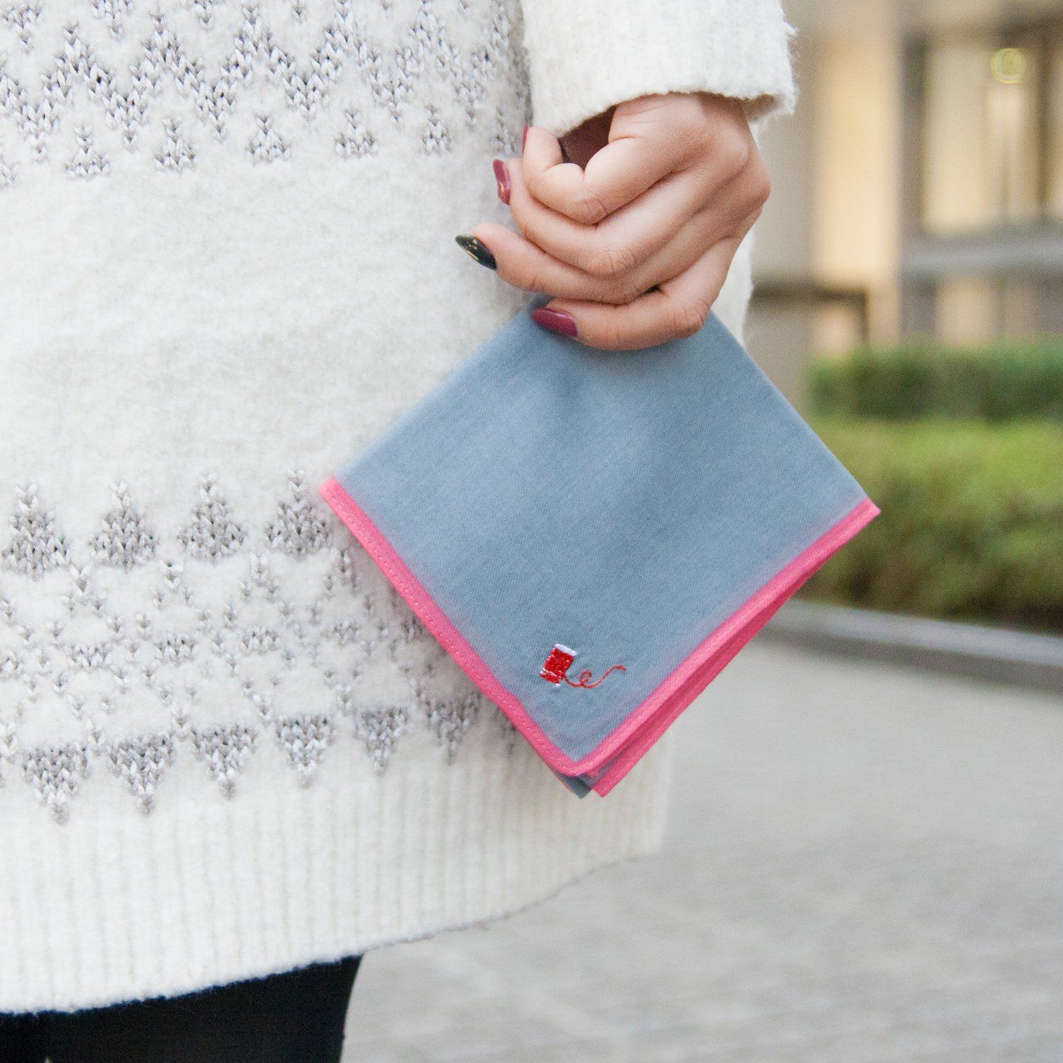 [クチデザイン] メッセージハンカチ handkerchief ALOHA (ブルー×ピンク) FREE