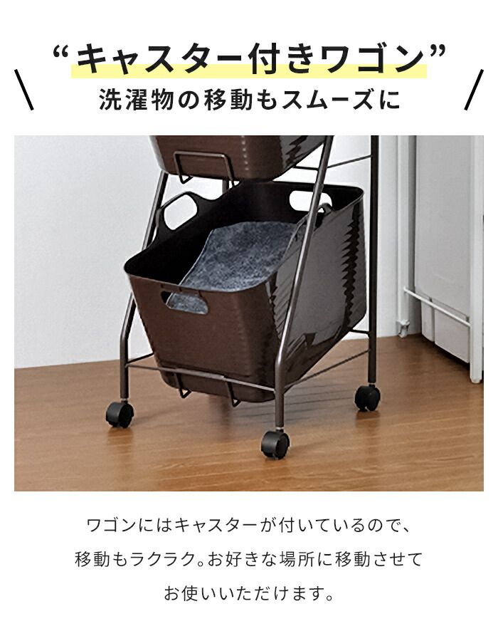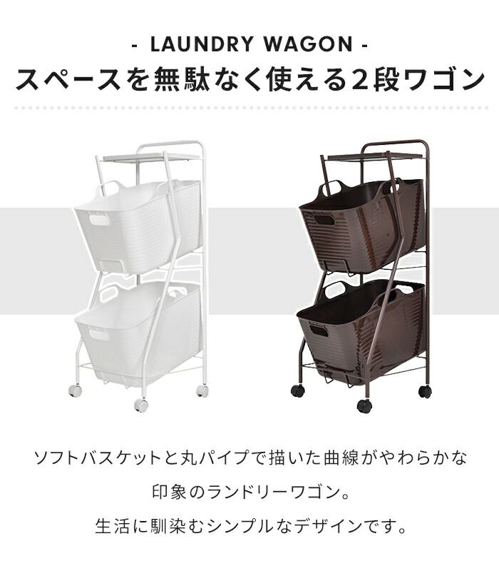 ランドリーワゴン バスケット付き 2段 幅38 高さ97.5cm ランドリーバスケット キャスター付き 洗濯かご 洗濯物入れ 収納ワゴン 丸型 ソフト やわらか 大容量 便利 おしゃれ 新生活 一人暮らし