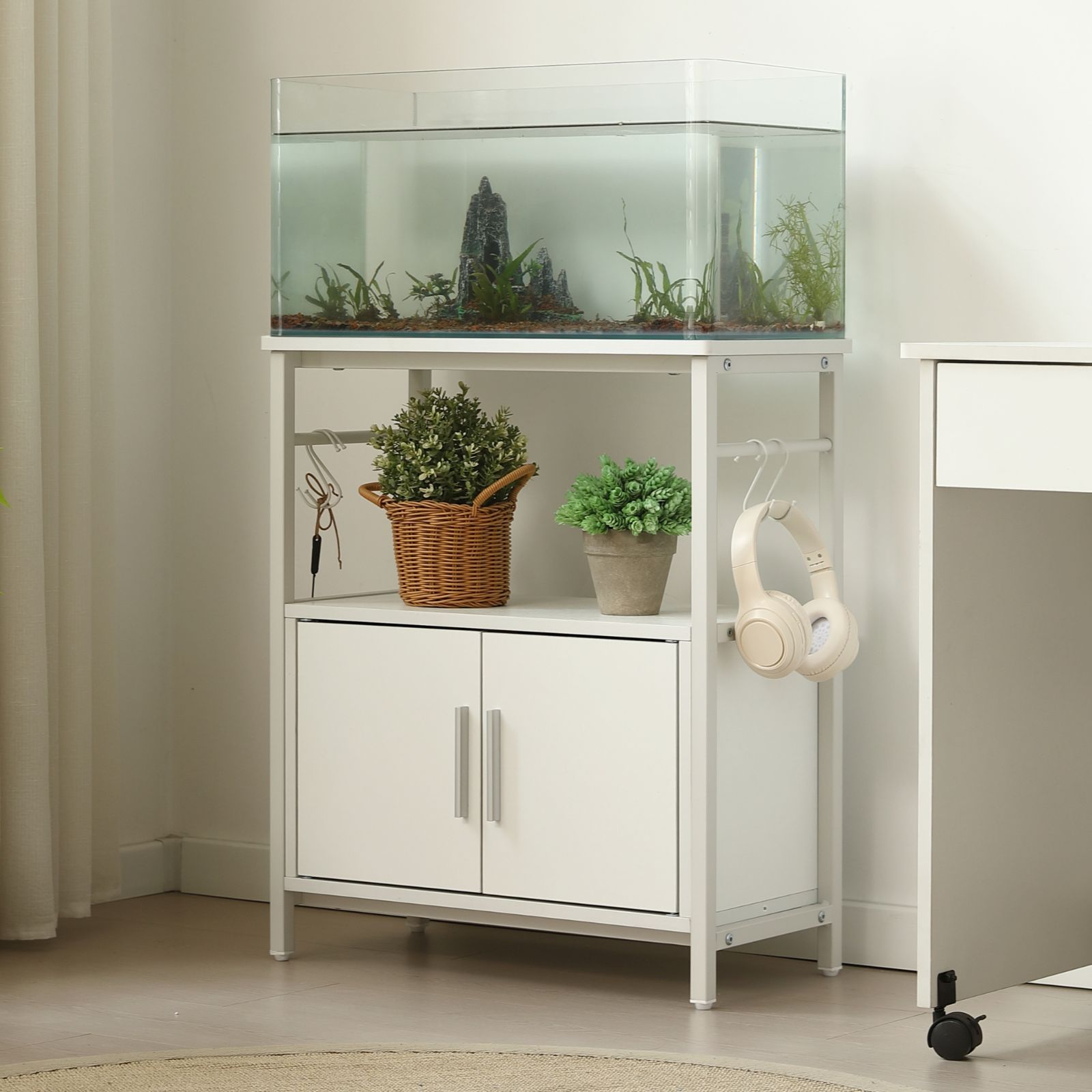 迅速発送 三段収納水槽台 水槽スタンド 耐荷重120kgですごく頑丈 スチールと木製 アジャスター付 頑丈フック付き 両開き扉 WHITE✕BLACK