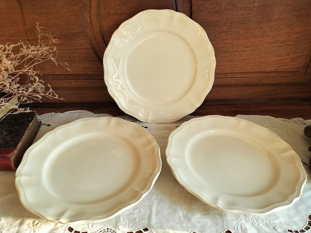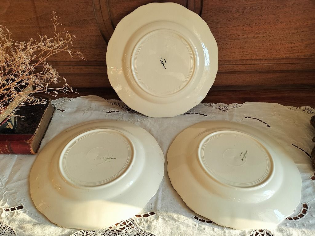 フランス アンティーク 花リム 皿 3枚セット サルグミンヌ 美品 25cm です。