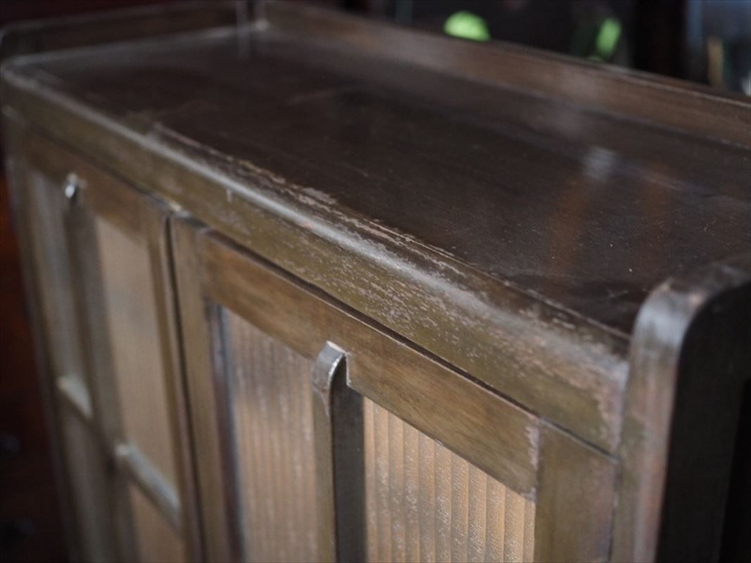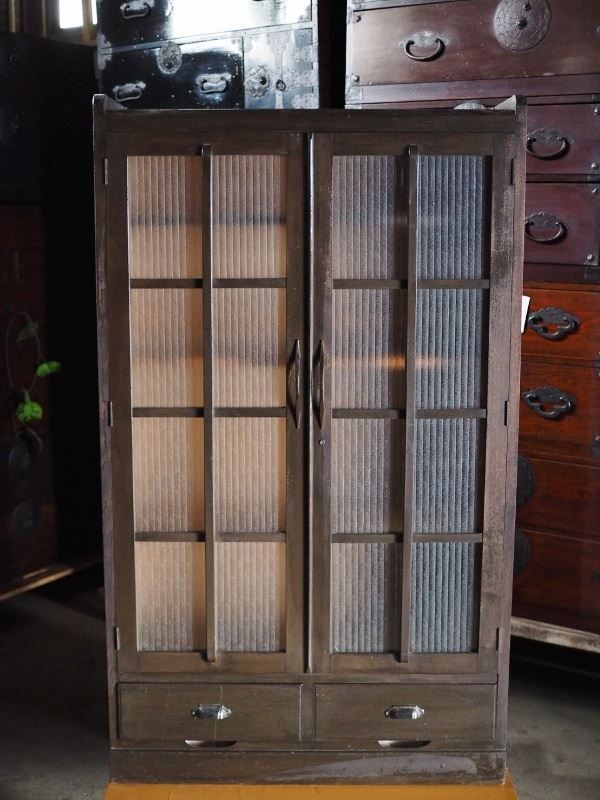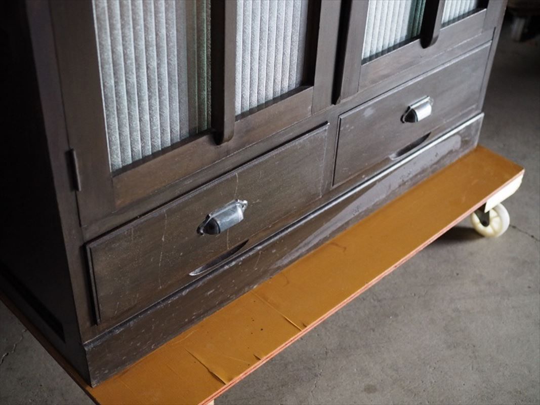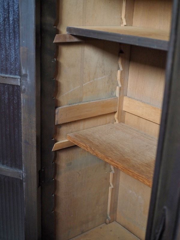 昭和レトロなモールガラスキャビネット 側面板波ありアウトレット品 昭和中期 古録展 品番S10741