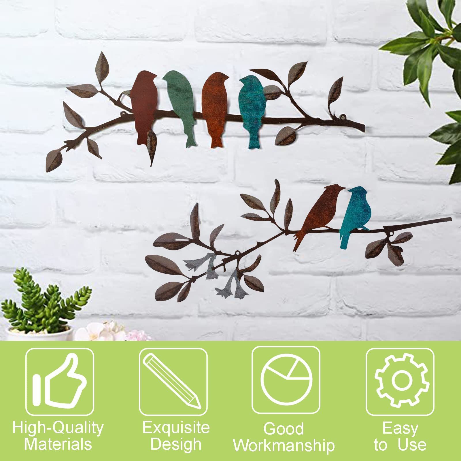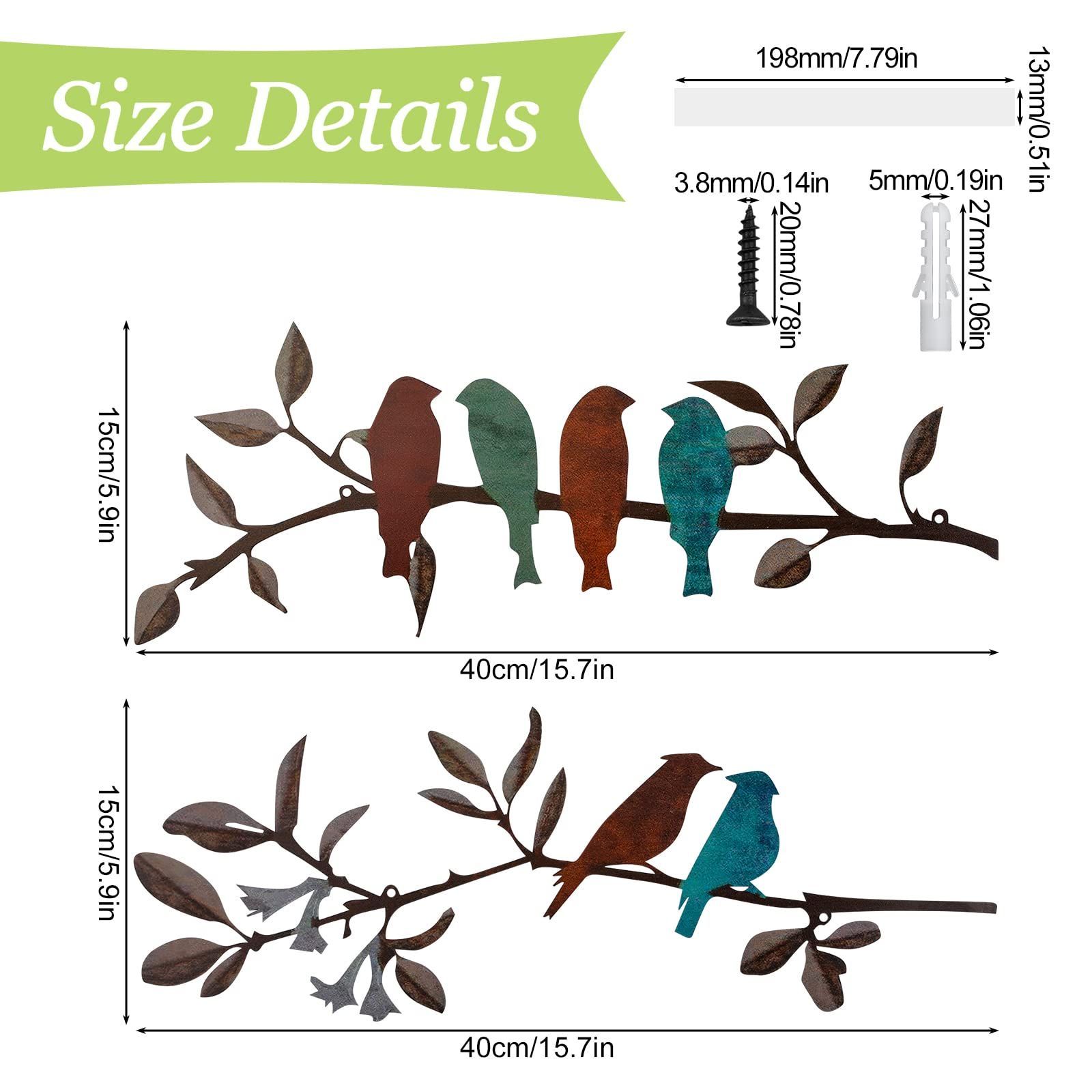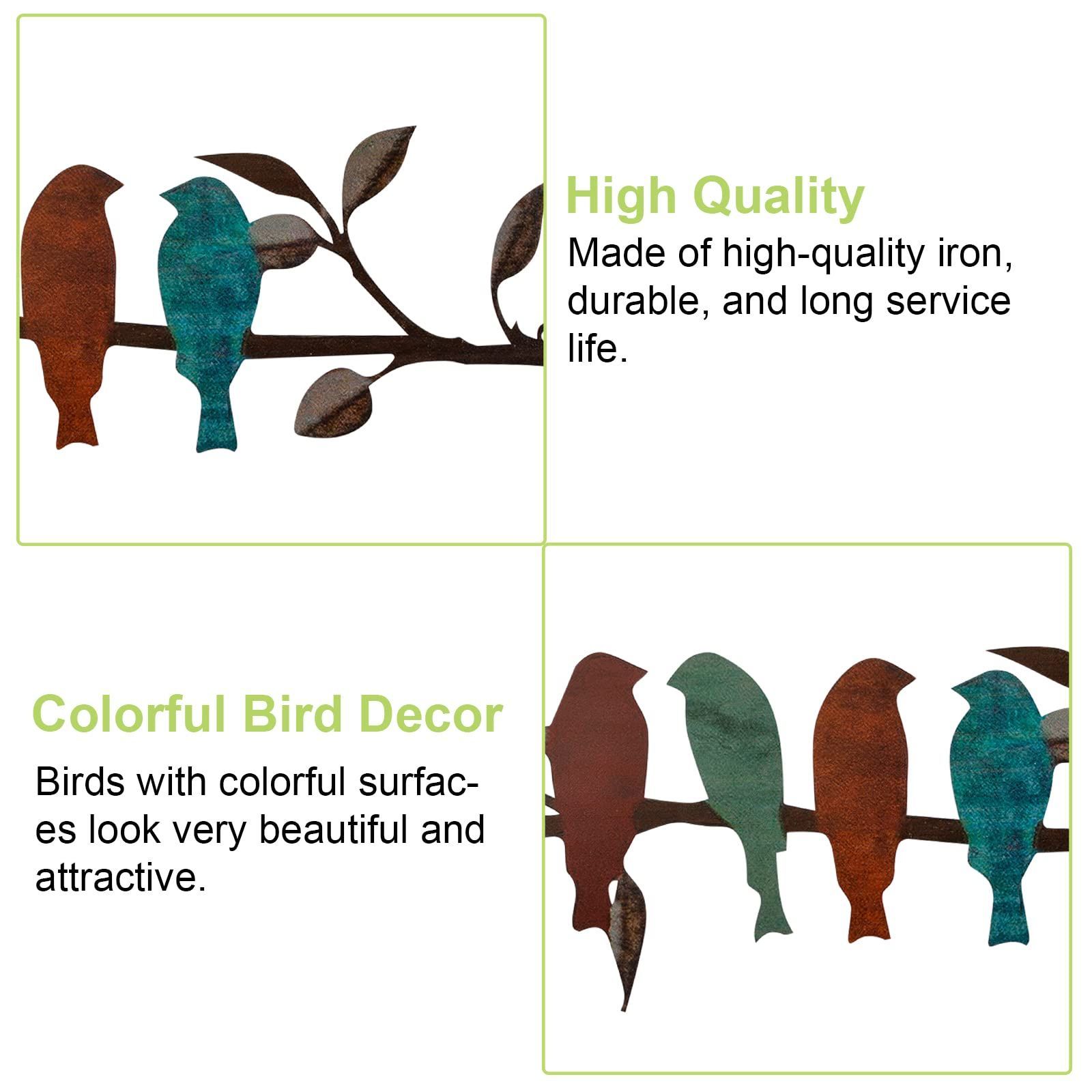 UFURMATEメタルバードウォールデコレーション、素朴な鳥の装飾リーフウォールデコレーションメタルオーナメントバードウォールアート 枝の壁の装飾の鳥と鳥 鳥と葉をぶら下げる 屋外の壁の装飾