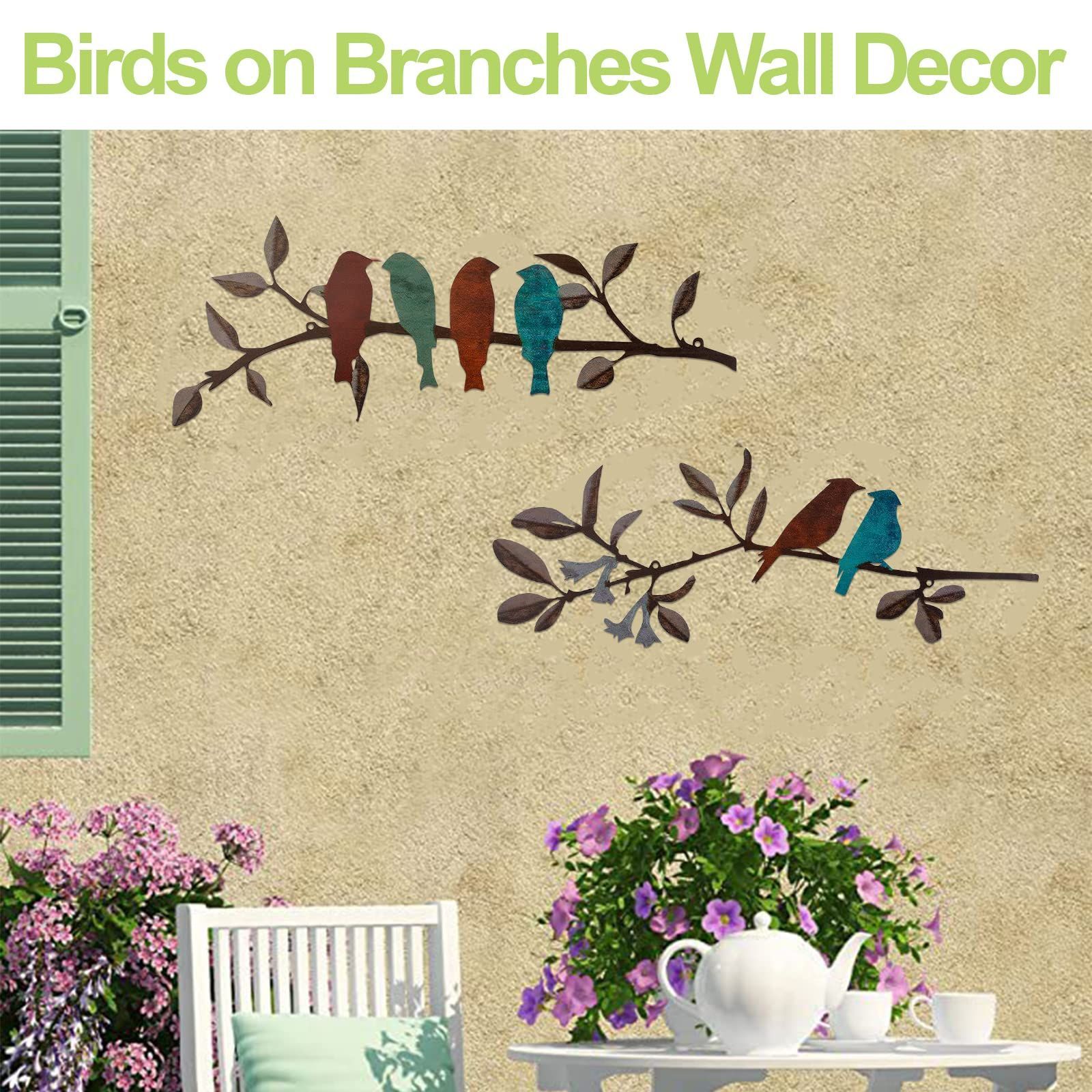 鳥と葉をぶら下げる 屋外の壁の装飾 枝の壁の装飾の鳥と鳥 UFURMATEメタルバードウォールデコレーション 素朴な鳥の装飾リーフウォールデコレーションメタルオーナメントバードウォールアート