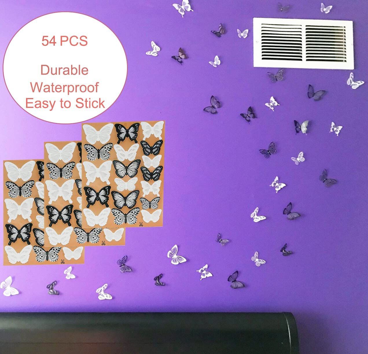 [バタフライステッカーセット]-蝶54個、テープ付き。 さまざまなスタイルで、より面白い形を作ることができます。