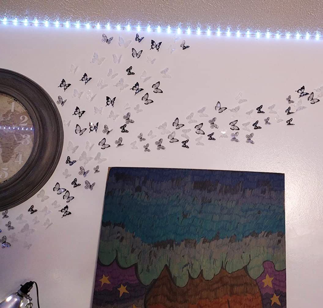 [貼り付け簡単] - 乾燥した、清潔で滑らかな表面ならどこでも使用できます。 蝶を貼りたい場所をきれいにし、きれいな表面にテープで貼り付け、羽を折って立体効果を発揮します。