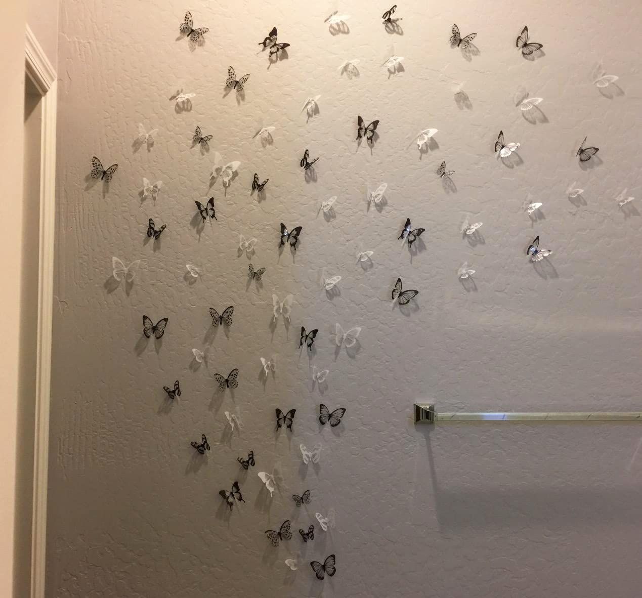 100枚入り 立体3D蝶々 蝶型貼り紙 壁紙シールトンボバタフライウォールステカラフル 部屋や、家庭飾り用 両面テープ付き (ブラック ホワイト 54個)