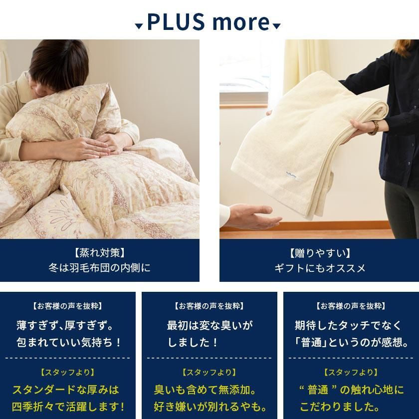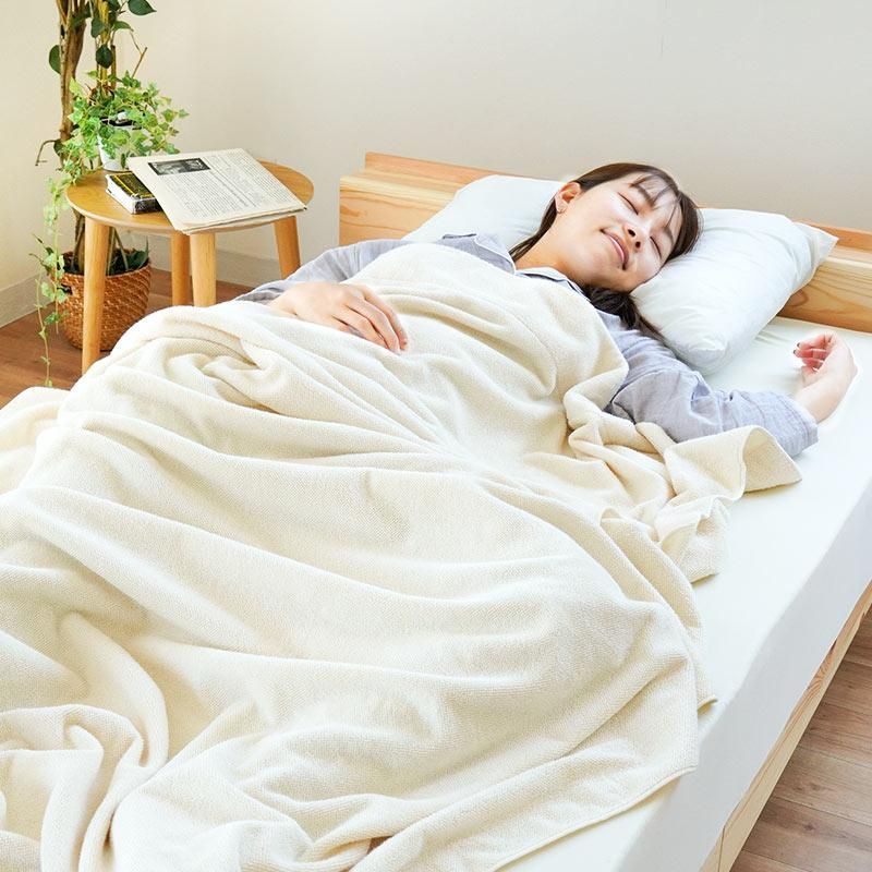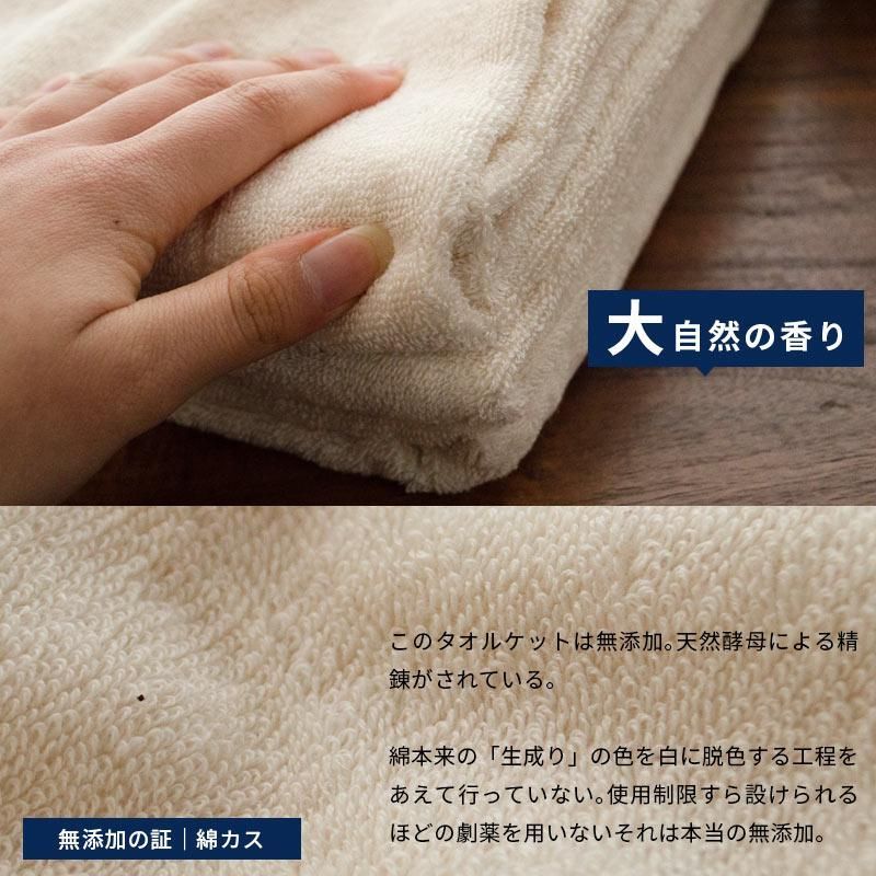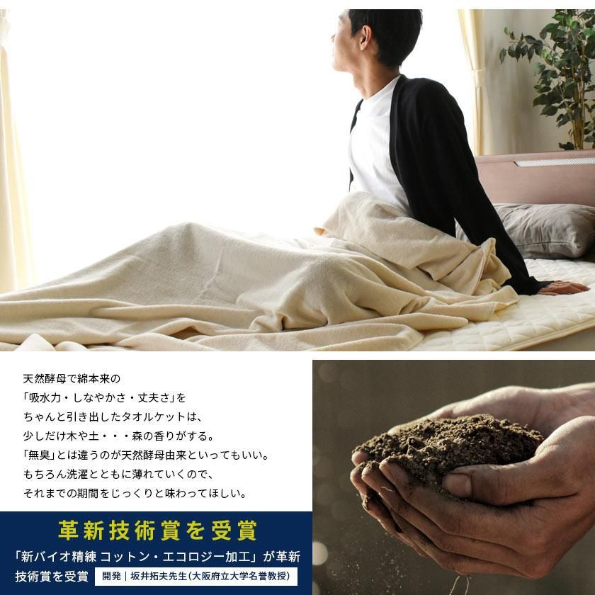 吸汗性に優れた天然素材のコットン(綿)100%使用、新バイオ精錬という新技法を用いた無添加仕上げ。さらに無漂白・無染色で、人にも地球にもやさしいケットです。