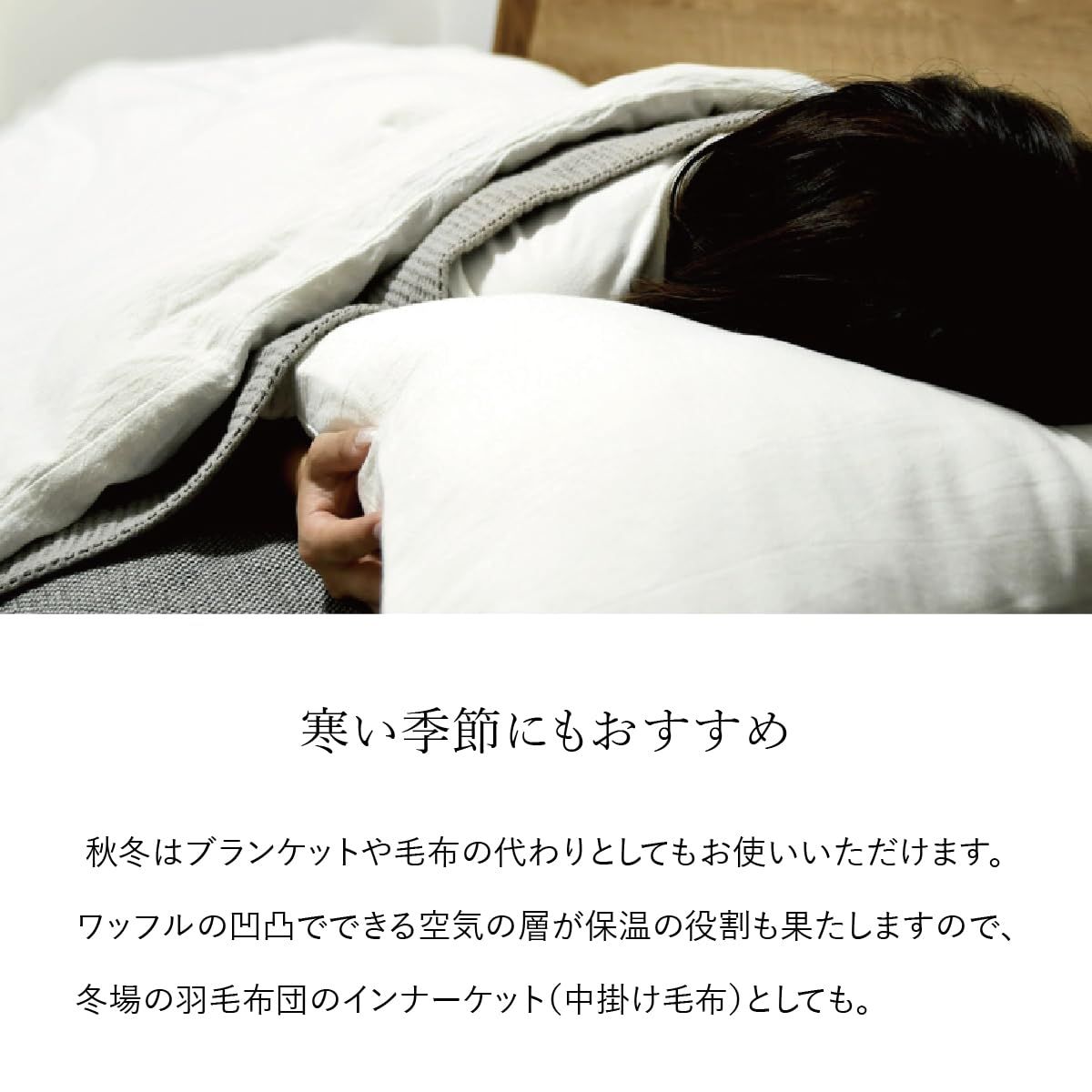 【寒い季節も使用可能】 秋冬はブランケットや毛布の代わりとしてもお使いいただけます。凹凸でできる空気の層が保温性の役割も果たしますので、冬場の羽毛布団のインナーケット(中掛け毛布)としても。