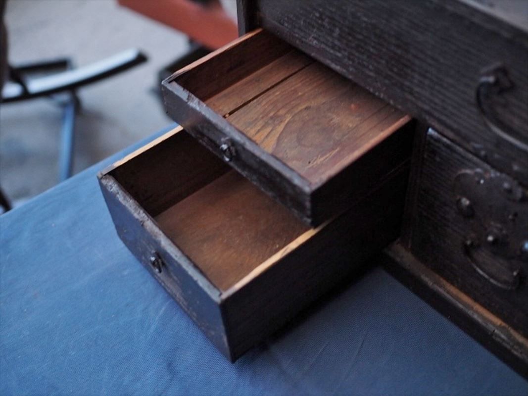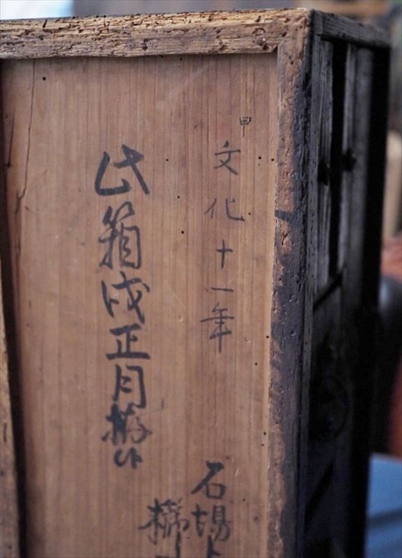 211年前の枯れた抽斗箪笥 文化11年1814年墨書。実用できます。虫食い痕、リペイント痕あり。劣化については画像・動画をご確認ください。(◎【注意】① Kサイズ以上の「家財便」は火曜日配送NGです。②離島一部220・Hサイズ以上は配送NGです。)不明点は電話・LINE・メール・Instagramメッセージにてお問い合わせください。誠実にお答えいたします。
