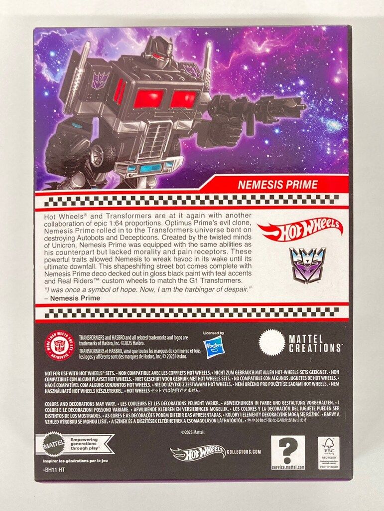 MATTEL 2025 RLC|RED LINE CLUB|MATTEL CREATIONS HOT WHEELS TRANSFORMERS NEMESIS PRIME JCP67