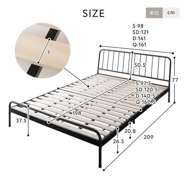 きしみ音も少なく快適に長くお使いいただけるベッドです。