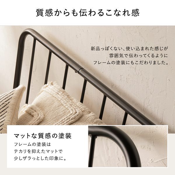 ♪ セミダブル ヴィンテージ調 パイプベッドフレーム 幅141cm パイプベッド すのこ スチール インダストリアル ベッド おしゃれ レトロ調