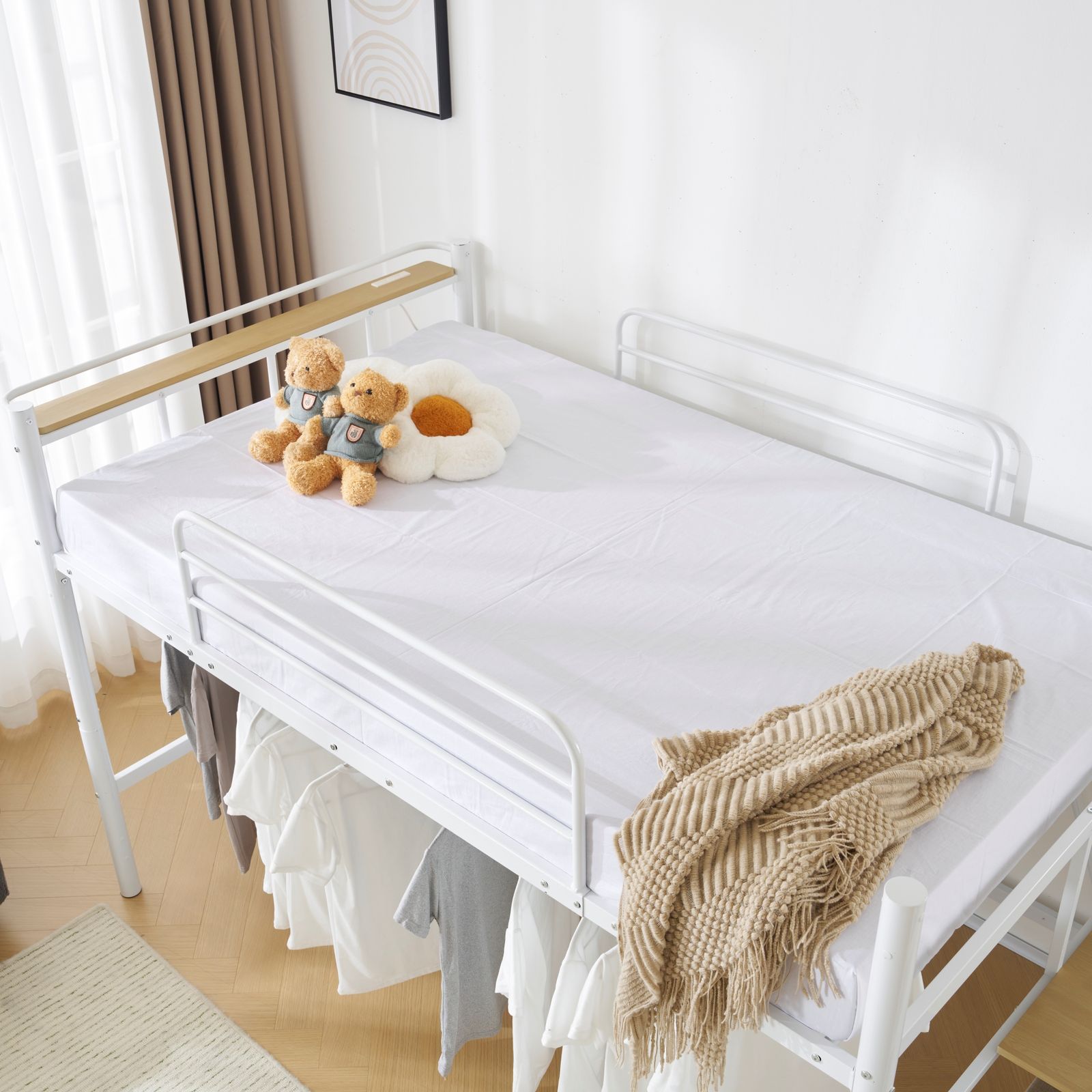 【Detail】ちょうどいい130cm高さ ●通気性もバッチリで年中快適 ●ハイガードで転落を防止 ベッド横のカードの高さは約31cm。しっかりとした高さで移動や寝返りによる転落を防ぎます。