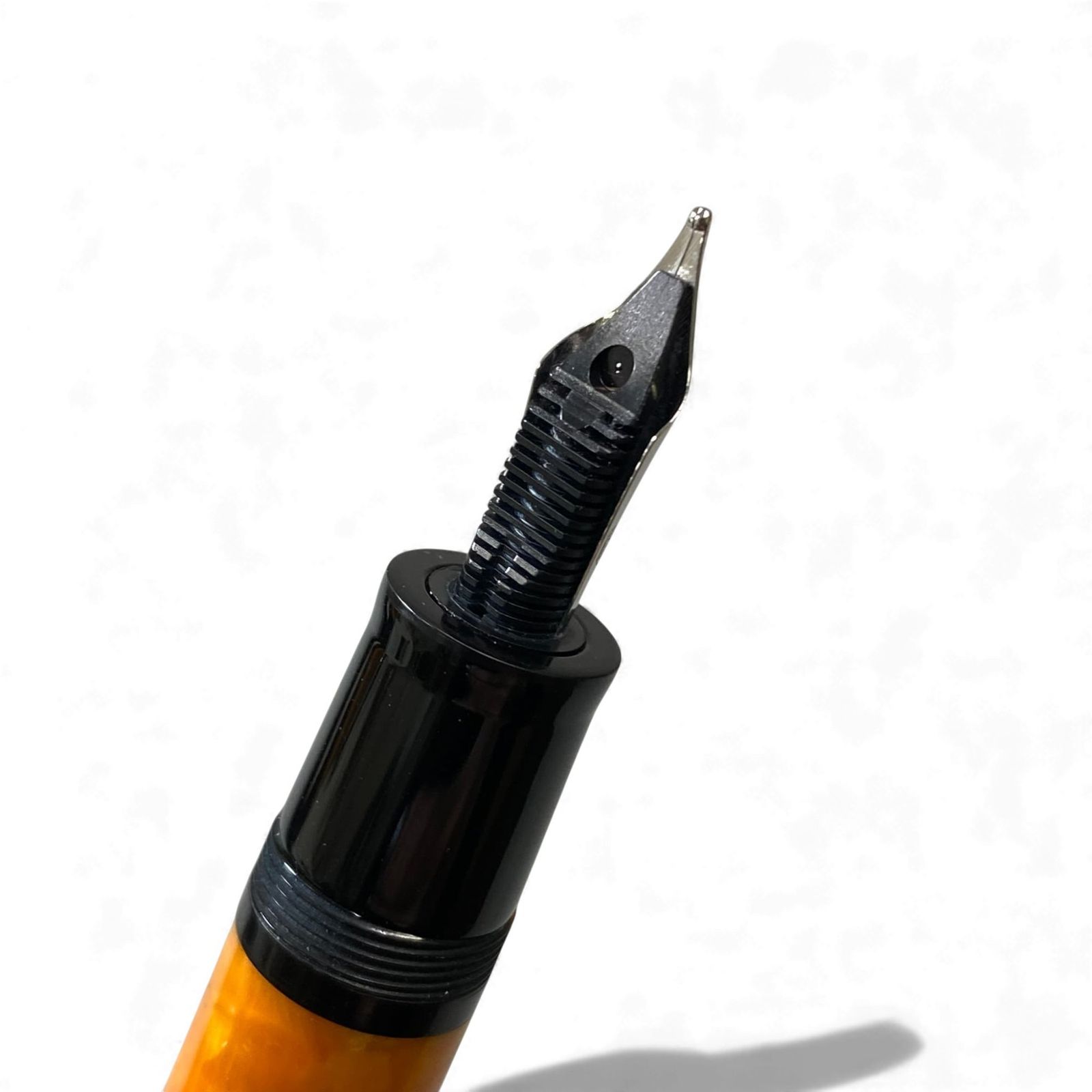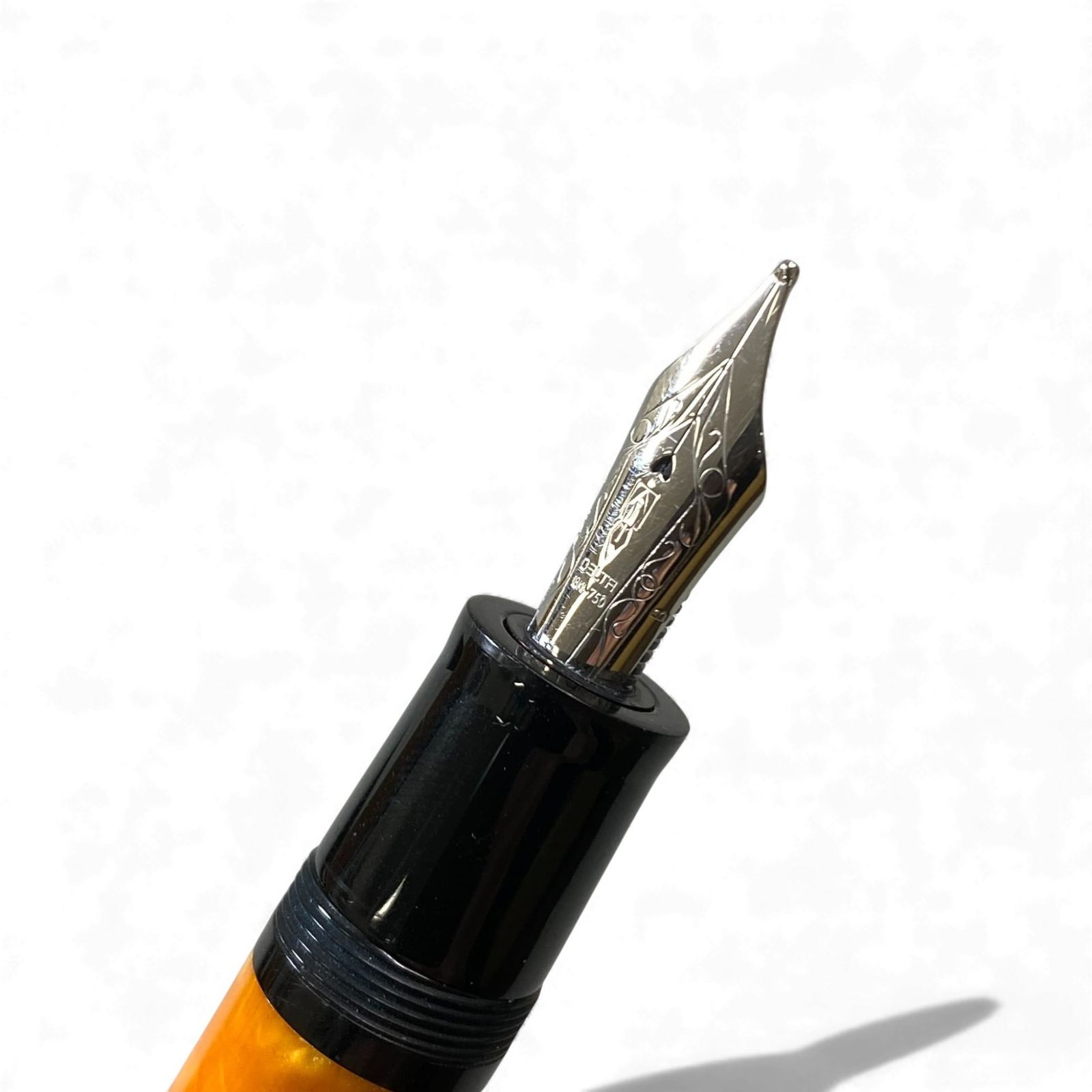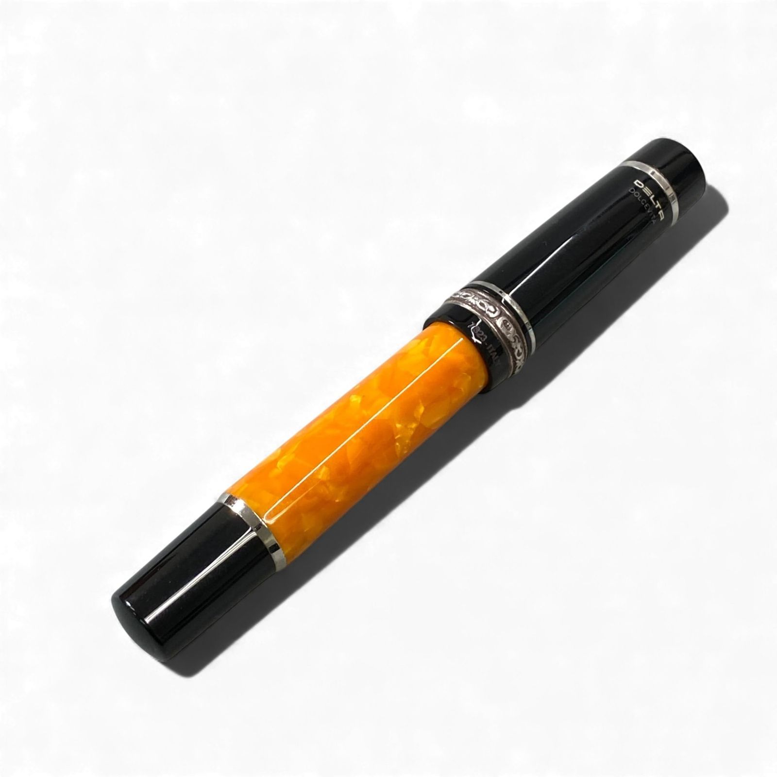 DELTAの万年筆は、アンバーオレンジ系マーブルレジン軸が目を引く、イタリアらしい華やかさを備えた一本です。
