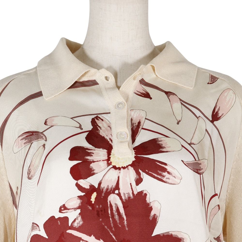 HERMES エルメス 花柄 シルク×カシミヤ ベージュ 赤 レディース 半袖Tシャツ