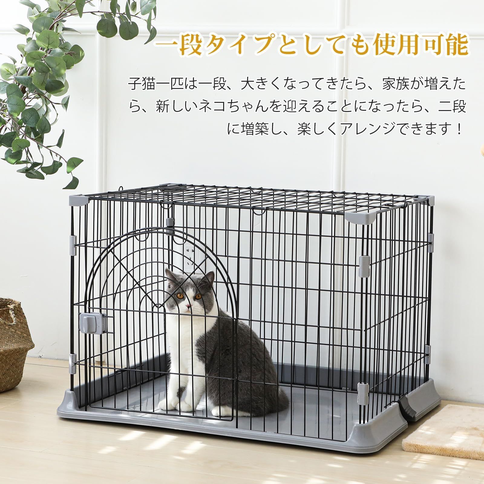 【1段・2段タイプとしても可能 ペットケージ 猫】子猫ちゃん1匹は1段、大きくなったり、家族が増えたり、新しい猫ちゃんを迎えたりする場合は、ペットケージを2段や3段まで増築して、快適スペース!