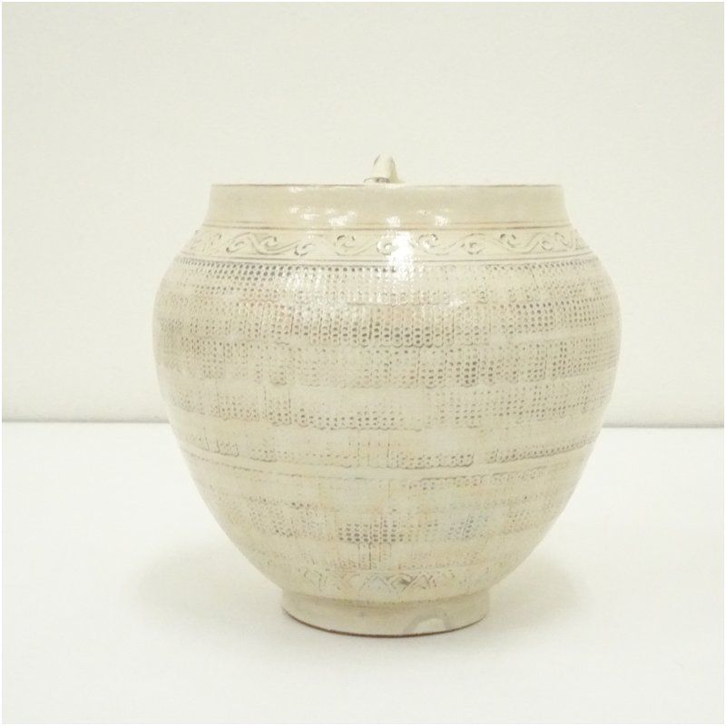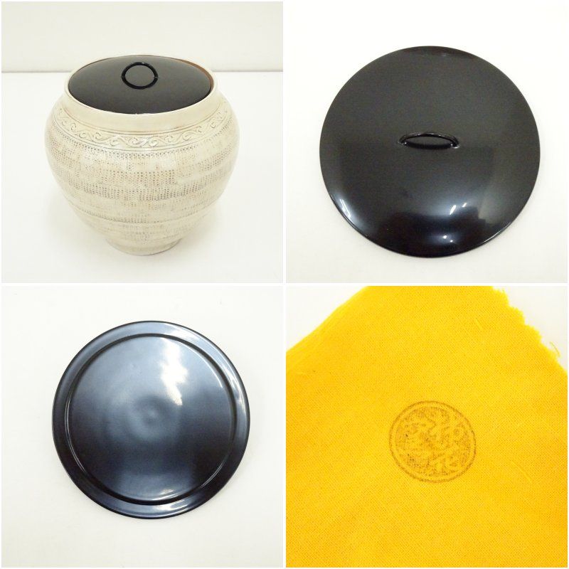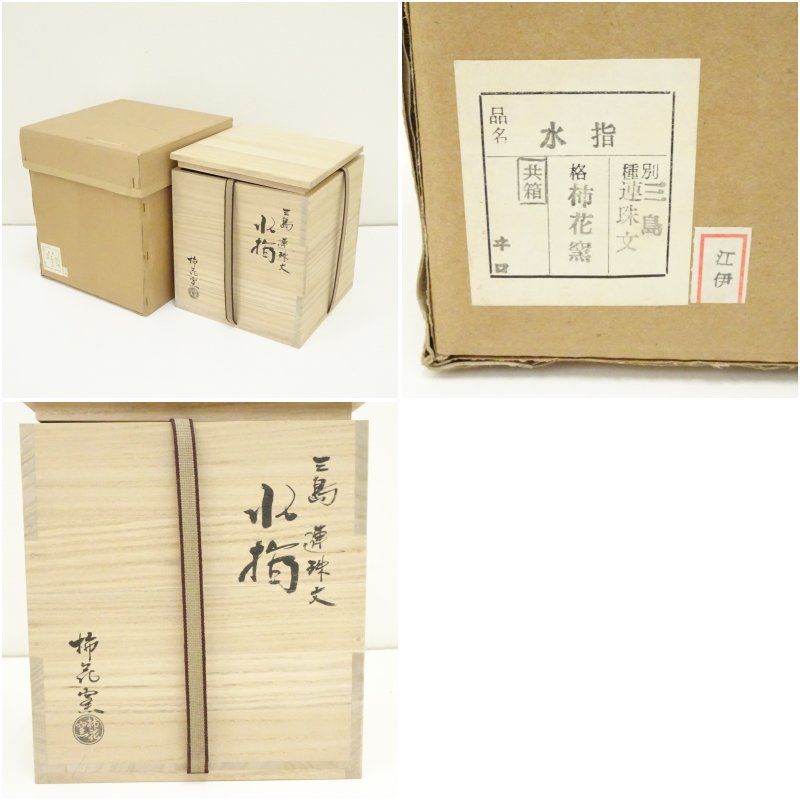 柿花窯造 三島連珠文水指 替蓋付 共箱 水指し 茶道 茶道具 おしゃれ 水差し 抹茶 インテリア 茶器 水器 お茶 骨董 茶会
