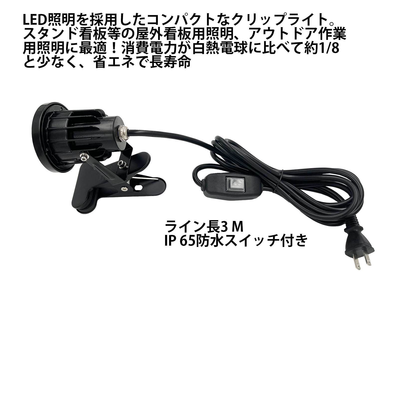 【クリップ式スポットライト】LED照明を採用したコンパクトなクリップライト。スタンド看板等の屋外看板用照明、アウトドア作業用照明に最適!消費電力が白熱電球に比べて約1/8と少なく、省エネで長寿命